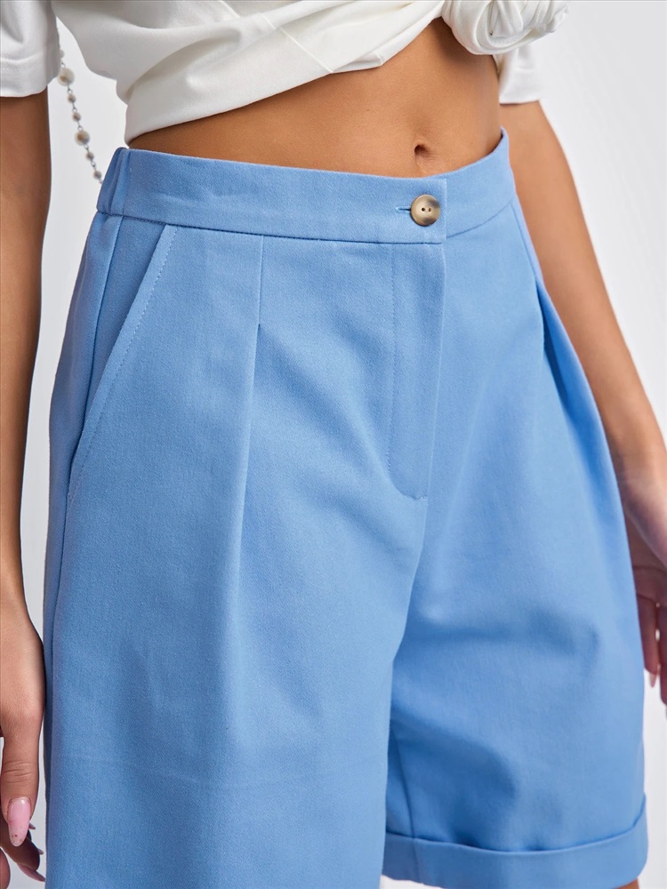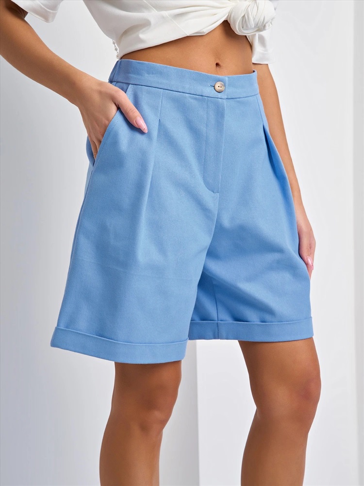Изделие с притачным поясом, на спинке вставлена резинка. Низ изделия с отворотом. В боковых швах карманы. Высокая посадка. Комментарии к товару