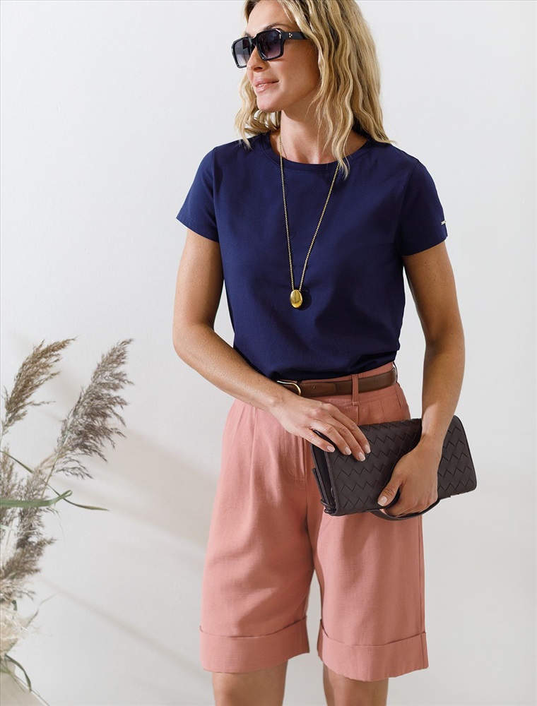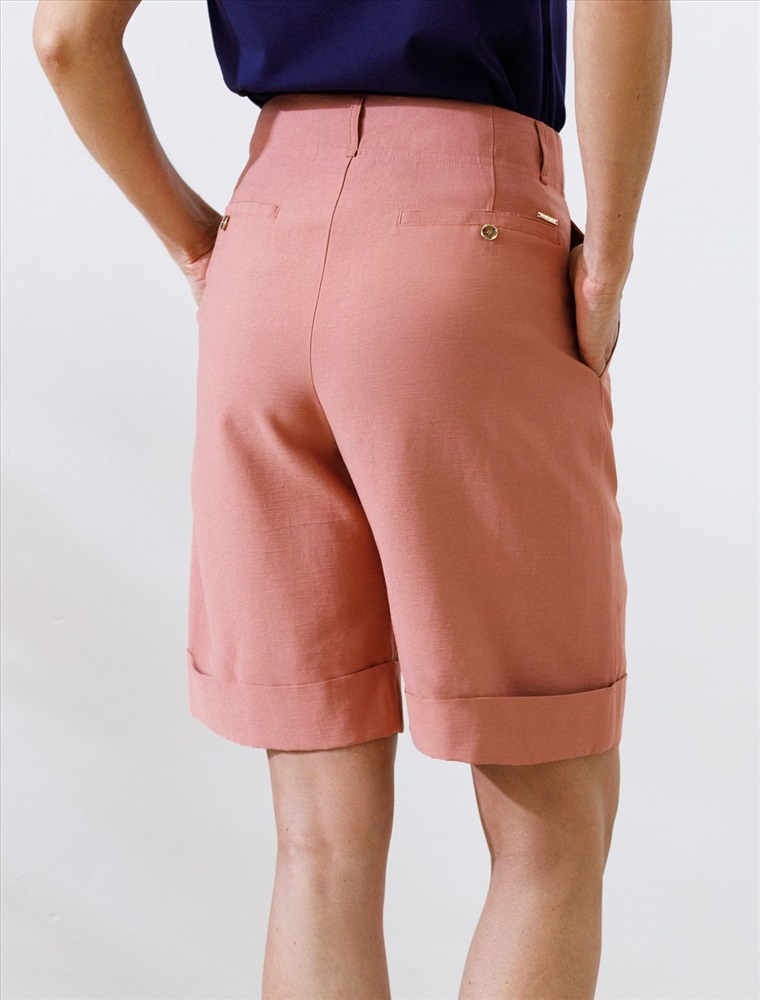 Параметры модели на первом фото: Рост 172, бюст 88, талия 64, бедра 88 Шорты-бермуды выполнены из плотного лиоцелла. Модель дополнена карманами и поясом со щлевками под ремень. Ткань изделия отлично держит форму, плавно драпируется и не просвечивает. В теплое время года приятно охлаждает кожу. Добавление синтетических волокон в составе изделия, предотвращает сминаемостьи поддерживает формоустойчивость. Брюки сочетаются в костюме с топом D23.063 и блузкой D29.266, D29.267 и жилетом D27.002