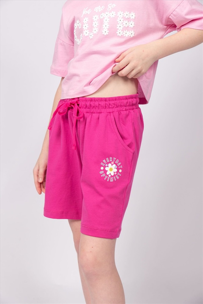 ID товара: 986782 Состав: 100% Хлопок Сезон: Весна/Лето Длина: До колена Фасон: Прямые Вид застежки: Шнурок Тип карманов: В шве Основная ткань: Хлопок Стиль: повседневный Вид ткани: Кулирка Страна бренда: Россия Страна производства: Россия Модные и удобные трикотажные шортики - отличный выбор для девочек на летний сезон и для занятий спортом. Шорты для девочки прямого силуэта. По поясу шорт вставлен плоский утягивающий шнурок, что придает модели дополнительный акцент. Низ шнурка подвернут и застрочен. На левой передней половинке шорт принт шелкография. Надпись переводится как Оптимист каждый день. Комментарии к товару