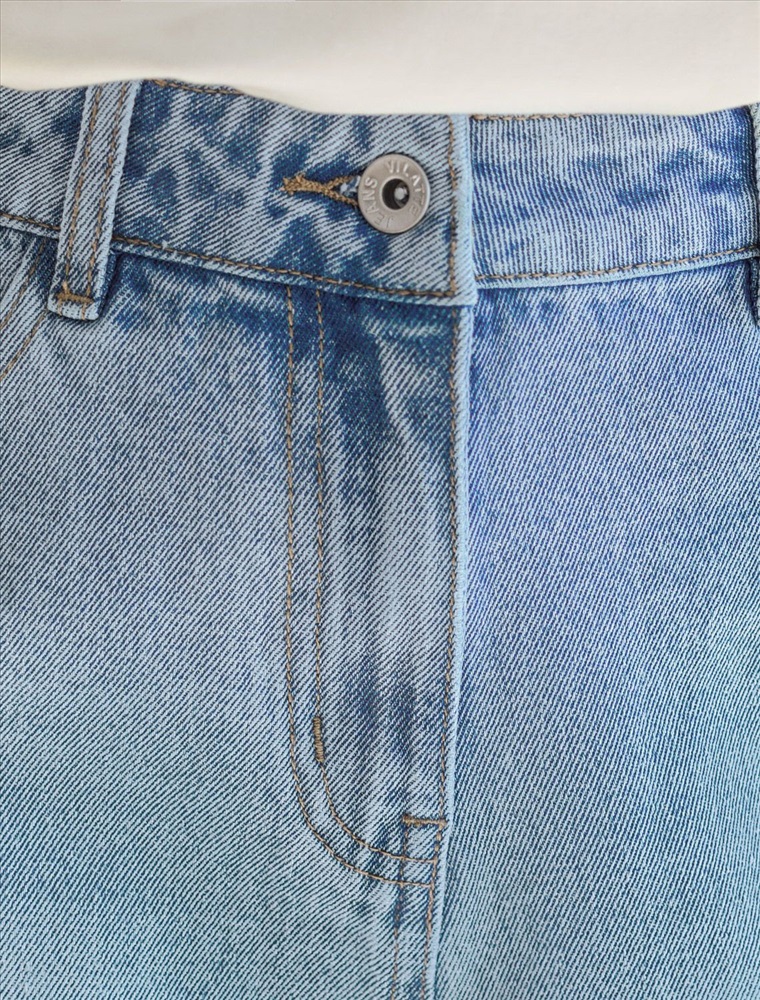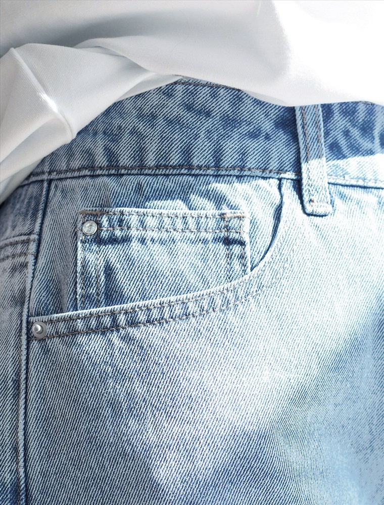 Шорты в голубом оттенке выполнены из эластичного денима. Модель с эффектной стиркой и трендовым ассиметричным рваным краем свободно сидит по фигуре и не сковывает движений. Сзади изделия фирменный брендированный патч.