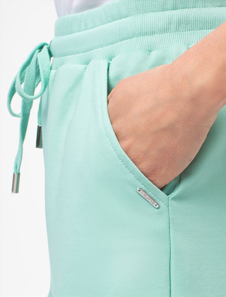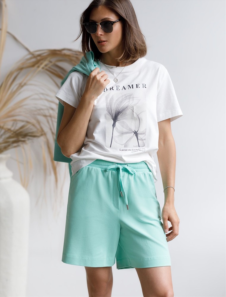Плотность: 240 Г/м2 Шорты выполнены из футера двухнитки с эластаном. Модель прямого кроя дополнена боковыми карманами и одним задним карманом. Пояс выполнен из эластичного трикотажа в рубчик. В пояс вставлен плоский хлопковый шнур в тон изделия с серебристыми наконечниками. Изделие дополнено металлическим логотипом бренда. Сочетается в костюме с жакетом D49.078, джемпером D49.079, D49.080 и футболкой D49.081 Комментарии к товару