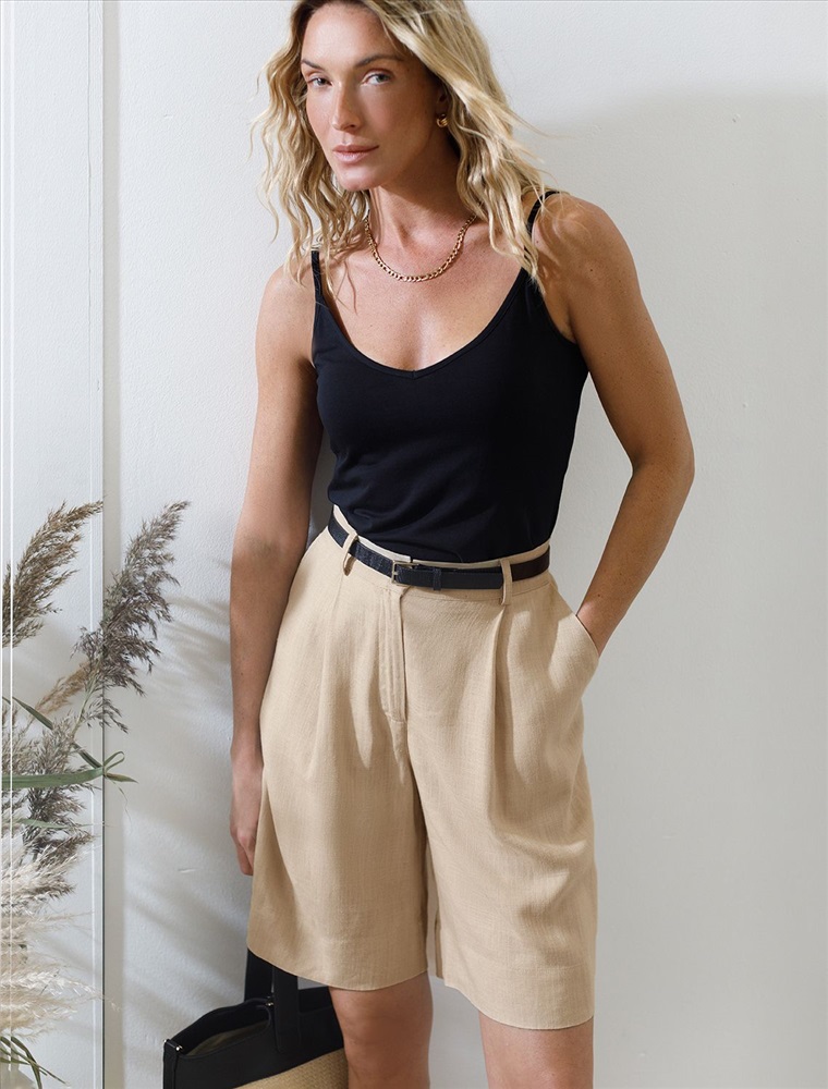 Шорты-бермуды выполнены изо льна с вискозой. Свободная модель с посадкой на талии. Ткань изящно струится, почти не мнется и сохраняет форму в течении долгого времени, обладает высокой воздухопроницаемостью. Идеальное решение в жаркий период. Подходит для любой фигуры и скрывает недостатки. Сочетается в костюме с топом D23.060 и блузками D29.237, D29.244