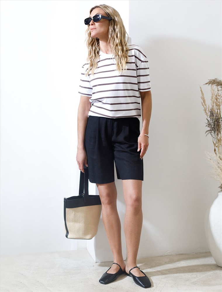 Состав: 70%Вис 30%Лен Шорты-бермуды выполнены изо льна с вискозой. Свободная модель с посадкой на талии. Ткань изящно струится, почти не мнется и сохраняет форму в течении долгого времени, обладает высокой воздухопроницаемостью. Идеальное решение в жаркий период. Подходит для любой фигуры и скрывает недостатки. Сочетается в костюме с топом D23.060 и блузками D29.237, D29.244
