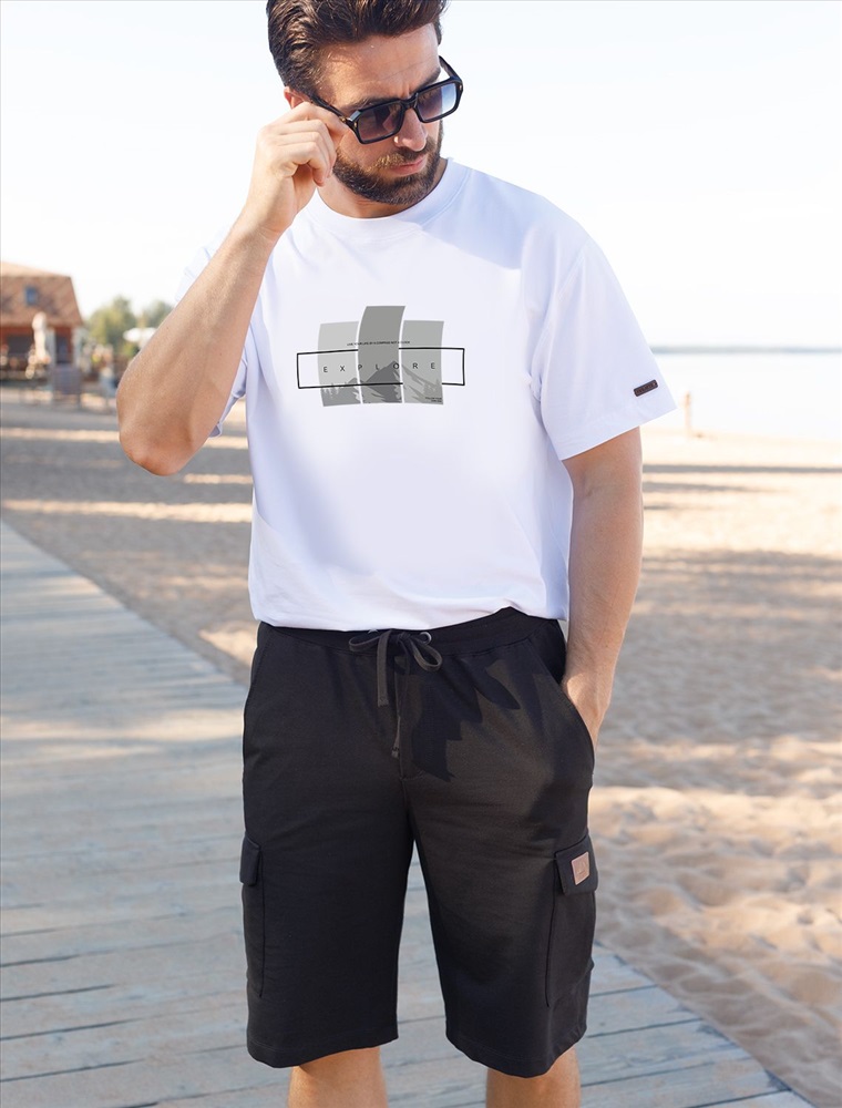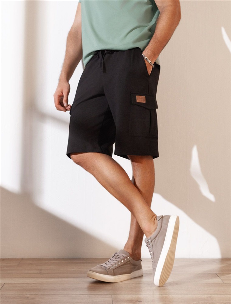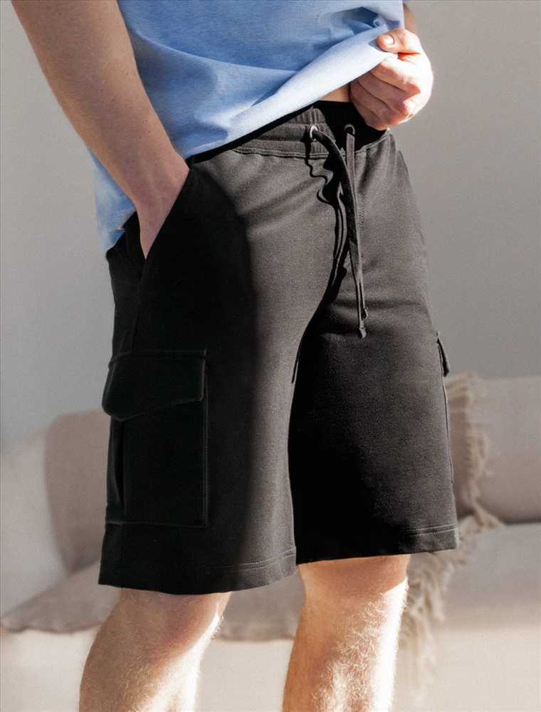 Плотность: 240 Г/м2 Параметры модели на первом фото: Рост 190, бюст 108, талия 87, бедра 104 Шорты выполнены из легкого футера с эластаном. Модель дополнена двумя накладными карманами. Мягкий материал хорошо пропускает воздух и поддерживает оптимальный микроклимат даже в жаркое время года, поэтому в изделии будет комфортно в течении всего дня. На кармане нашивка из эко-кожи. Комментарии к товару