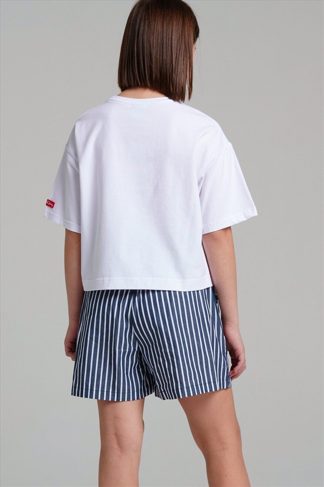 ID товара: 976941 Состав: 100% Хлопок Сезон: Весна/Лето Длина: Средняя Фасон: Свободный крой Вид застежки: Шнурок Рисунок: Полоска Тип карманов: Втачные Страна бренда: Германия Страна производства: Китай Шорты свободного кроя из поплина. 100% хлопок. Эластичный пояс со шнурком. Карманы в боковых швах. Комментарии к товару