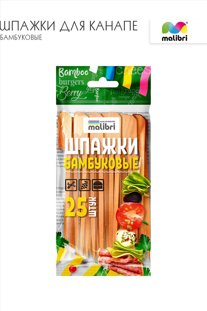 Состав: бамбук Модель: Шпажки для канапе бамбуковые 120мм, 25шт Malibri арт1009-003 Тип товара: набор для кухни Бренд: Malibri Назначение: для кухни Шпажки для канапе Malibri бамбуковые предназначены для сервировки стола и порционной подачи блюд. С их помощью можно украсить любое торжественное мероприятие. Бамбуковые шпажки подходят для оформления любых закусок, в том числе мясных, рыбных, овощных, фруктовых и т.д.. Шпажки для канапе Malibri изготовлены из экологичного и безопасного материала - бамбука. Для одноразоваого использования. Экологически безопасны! 1. Изготовлены из бамбукового волокна. Упругие, эластичные, отлично гнутся и, в то же время, прочные. 2. Благодаря особенностям бамбукового волокна, шпажки не поддаются гниению. 3. Шпажки без заусенцев и сколов - уменьшают риски возникновения травм в ротовой полости. Таблица размеров и веса