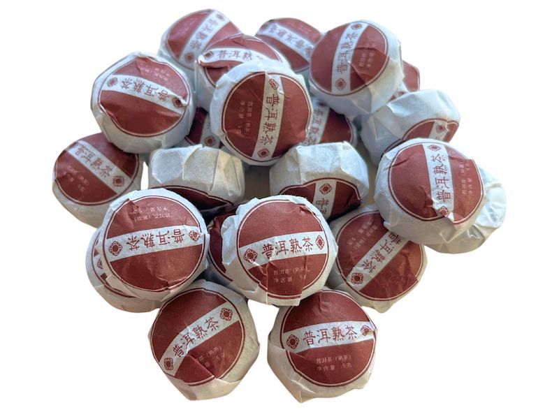 Классический китайский прессованный чай шу пуэр пятилетней выдержки из провинции Юньнань. Этот пуэр производится по специальной технологии двойной ферментации, после чего прессуется в маленькие «ласточкины гнезда», каждое из которых затем бережно упаковывается в рисовую бумагу.