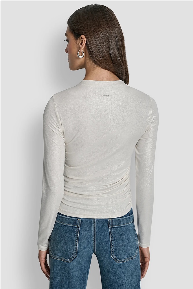 SIDE RUCHED HIGH NECK LONG SLEEVE TOP