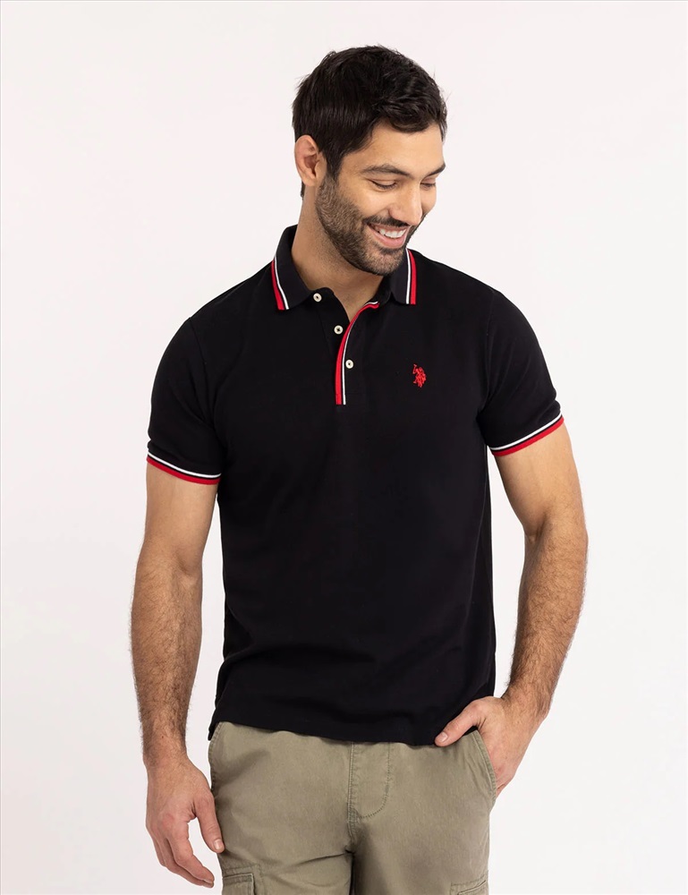 SIGNATURE STRIPE RIB TIPPED TRIM POLO SHIRT