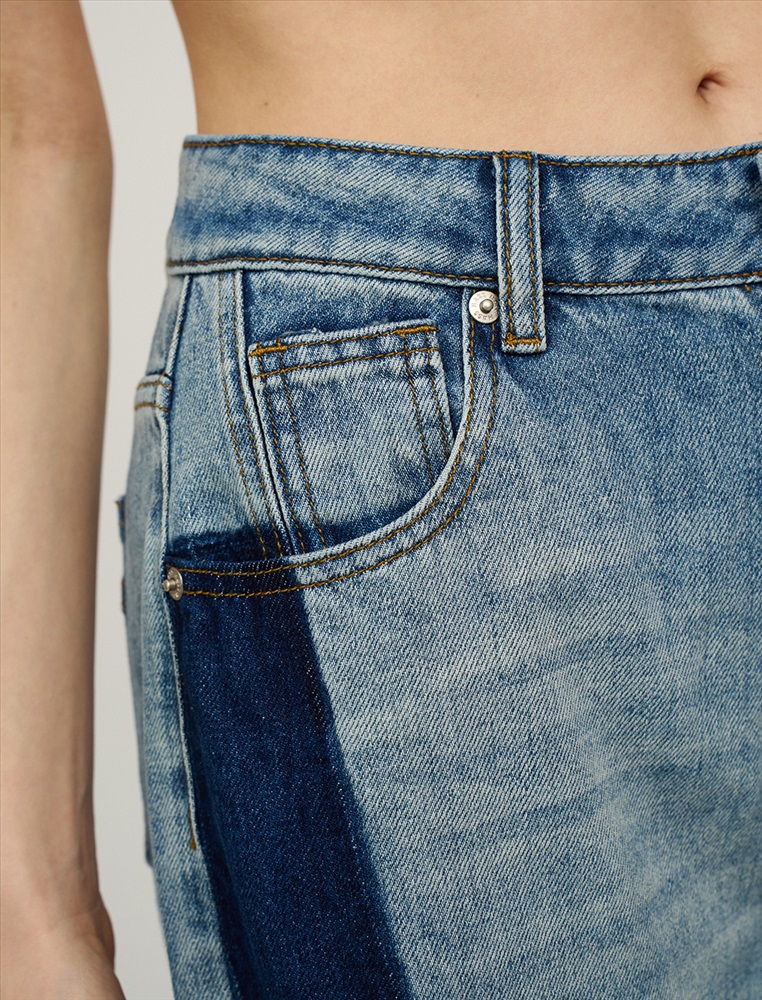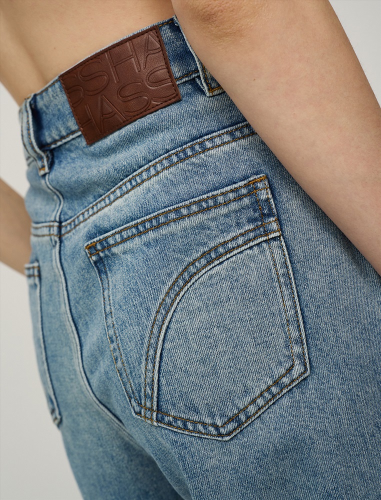 Видео: https-//hassfashion.ru/upload/iblock/e14/scnk4iedmaxyxnhqu86lzz4nykcn7rkl.mp4 весна-лето 95% Хлопок, 5% Спандекс Джинсы прямого силуэта с посадкой на уровне талии. По передней части изделия – классический гульфик, застежка на пуговицу. Боковые карманы классической формы. Сзади кокетка, накладные карманы и брендированный патч HASS. В составе хлопок (95%) и спандекс. Представлены в синем оттенке с варкой и декоративными синими следами от карманов.