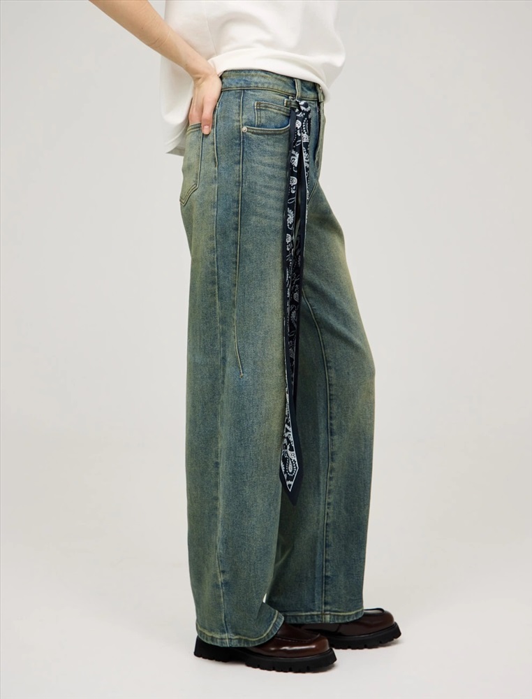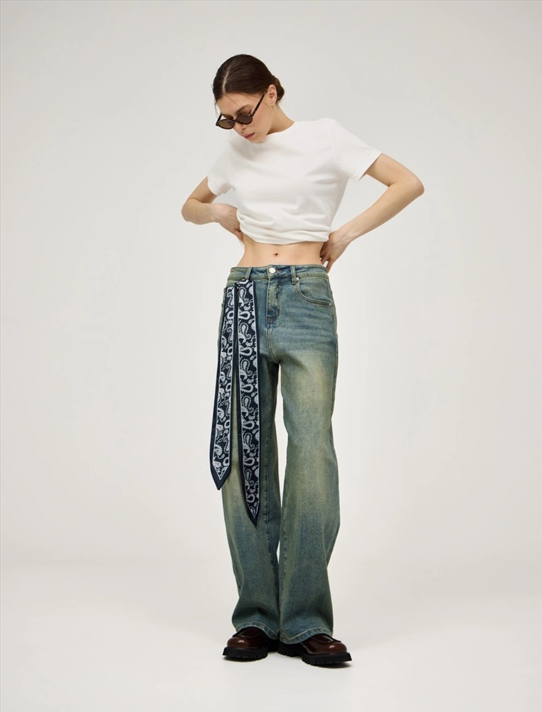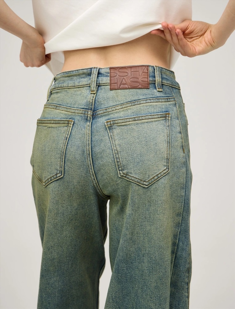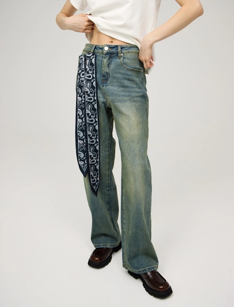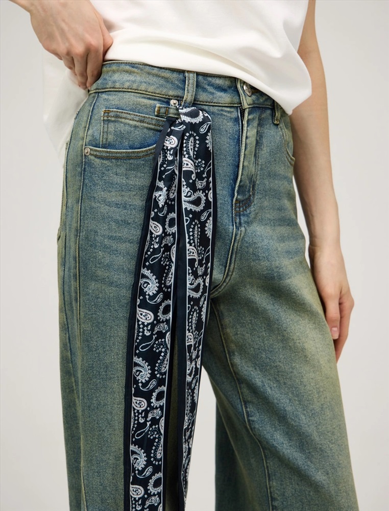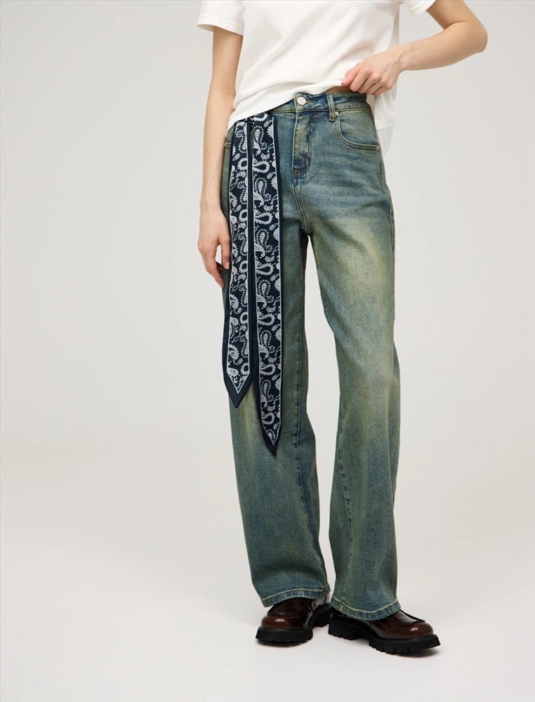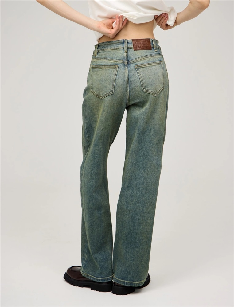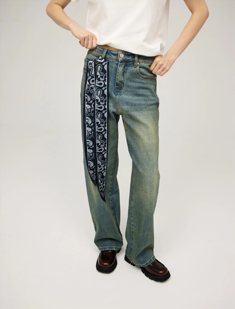 Джинсы прямого силуэта с посадкой на уровне талии. По поясу изделия декоративная шлевка для крепления аксессуара – платка, который идет в комплекте с изделием. По передней части изделия – классический гульфик, застежка на пуговицу и три кармана. Сзади кокетка, накладные карманы и брендированный патч HASS. Акцентной деталью изделия является варка – дуохромная в сине-зеленом цвете и равномерно высветленная в сером цвете. Выполнены из хлопка с добавлением спандекса, что обеспечивает комфорт и долговечность.