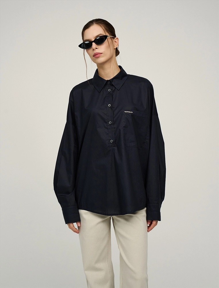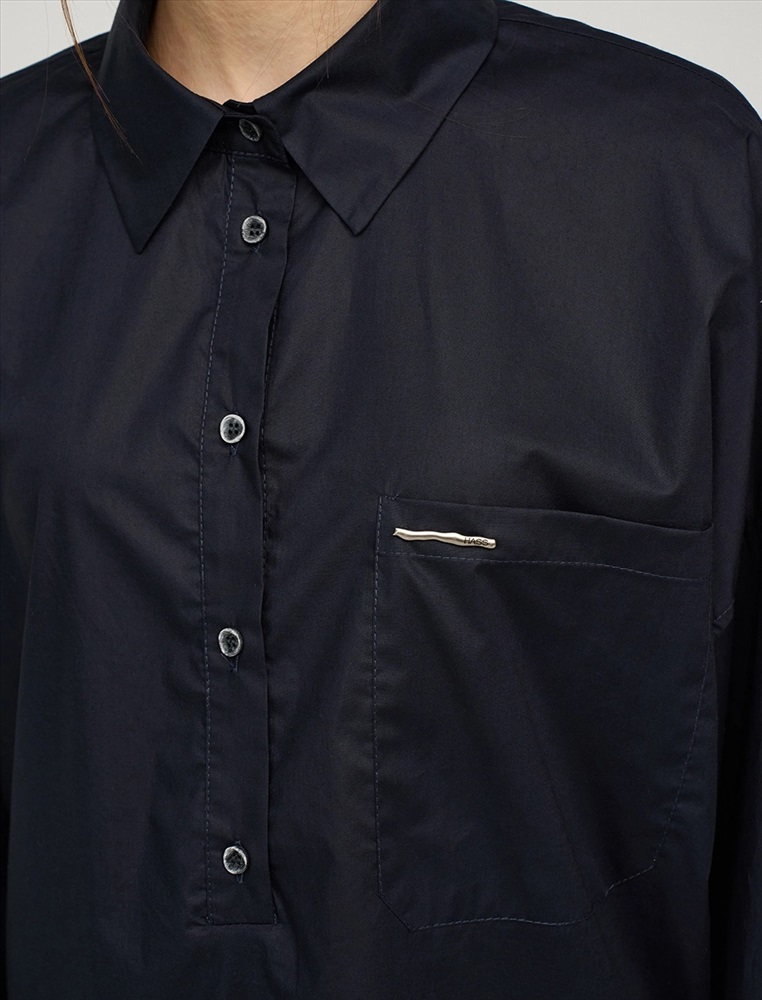 Видео: https-//hassfashion.ru/upload/iblock/f18/rwb5wuayeqpq1oavilyyp61zcaoclumo.mp4 весна-лето 97% Хлопок, 3% Шёлк Блузка регулярного силуэта с отложным воротником. Линия плеча спущена. По передней части — планка с застежкой на пуговицы, доходящая до уровня ниже груди. С левой стороны накладной карман с брендированным аксессуаром. Низ округлен. В составе ткани натуральные, дышащие материалы — хлопок и шелк. Представлена в синем цвете.