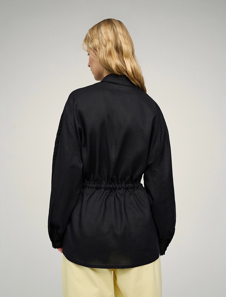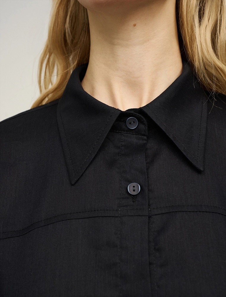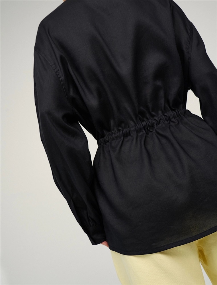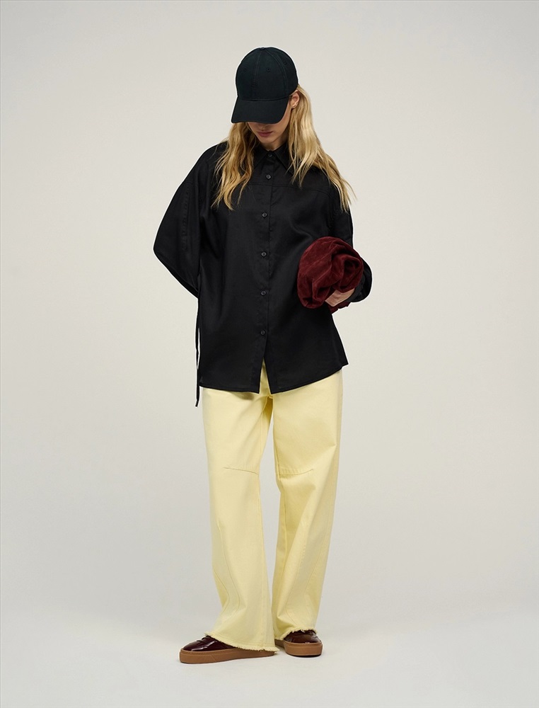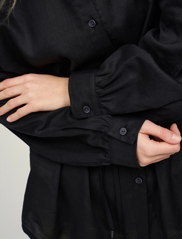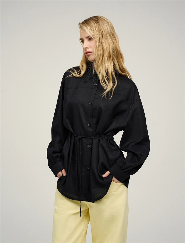 Видео: https-//hassfashion.ru/upload/iblock/670/wcinw77ejsljh5yhbwqfewpdg1mthmcg.mp4 весна-лето 78% Крапива, 19% Хлопок, 3% Шёлк Рубашка оверсайз силуэта с отложным воротником. Линия плеча спущена. По передней части изделия - застежка на пуговицы. На уровне выше груди декоративный рез. Манжеты с шлицами застегиваются на пуговицы. Выполнена из натуральных, дышащих материалов - крапива, хлопок и шелк. Представлена в синем цвете.