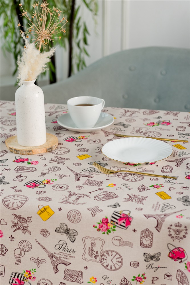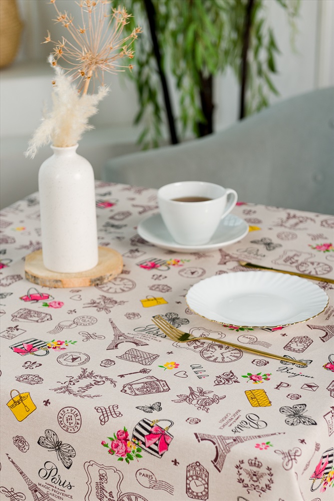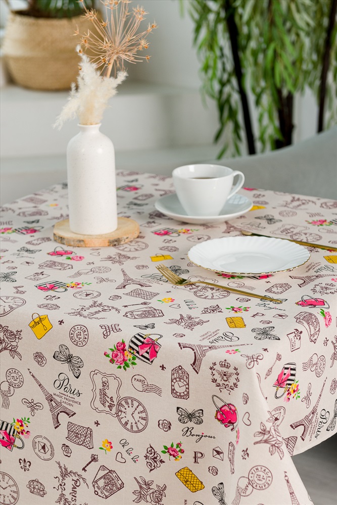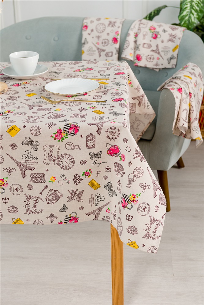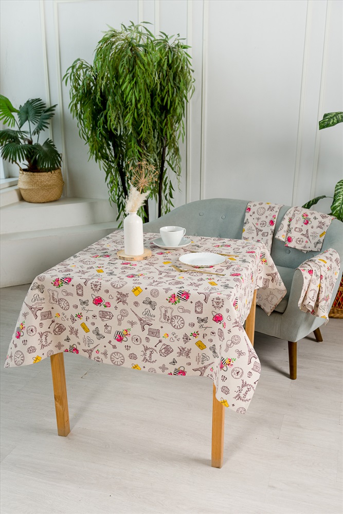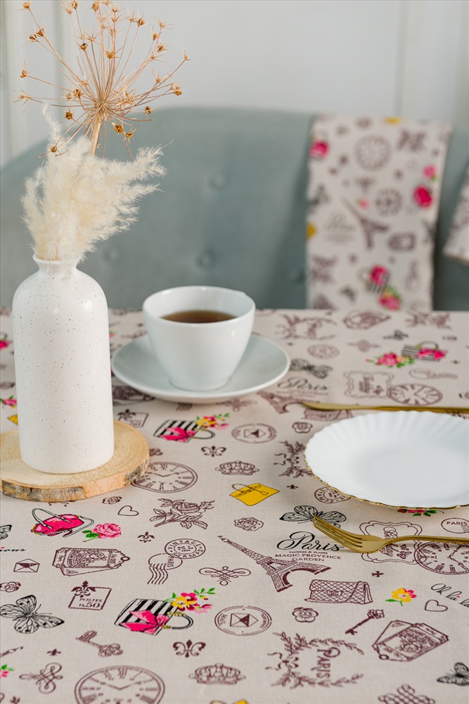 Сезонность: лето | осень | весна | зима Скатерть из рогожки Мадам отлично подойдет для интерьера любой кухни. Лаконичный нежный дизайн с французским мотивом будет радовать глаз и украшать обеденный стол.