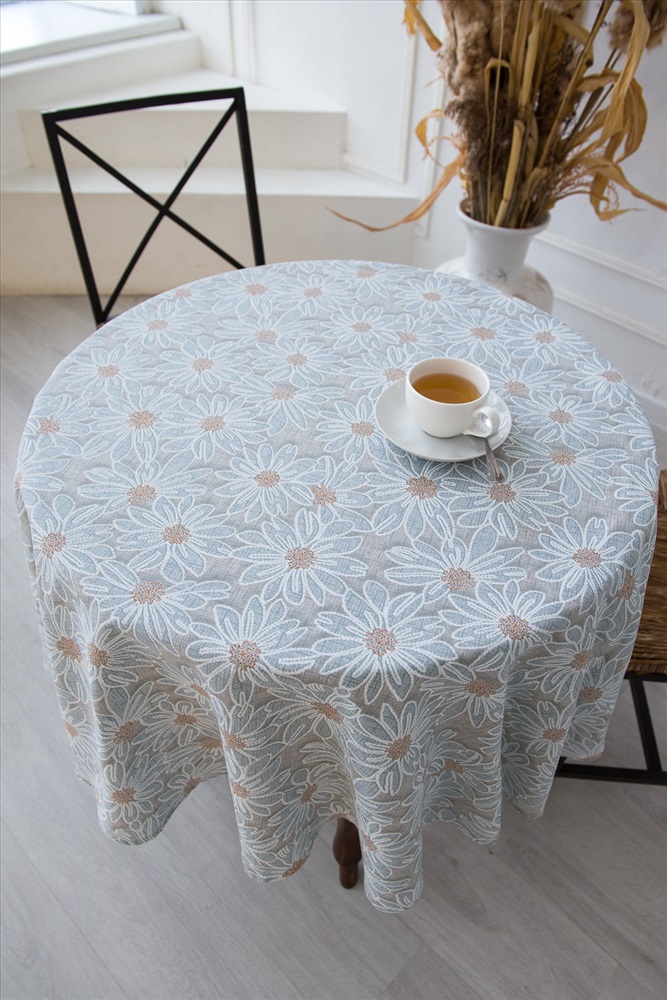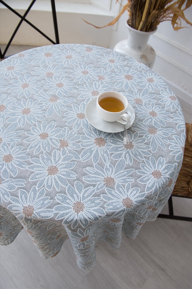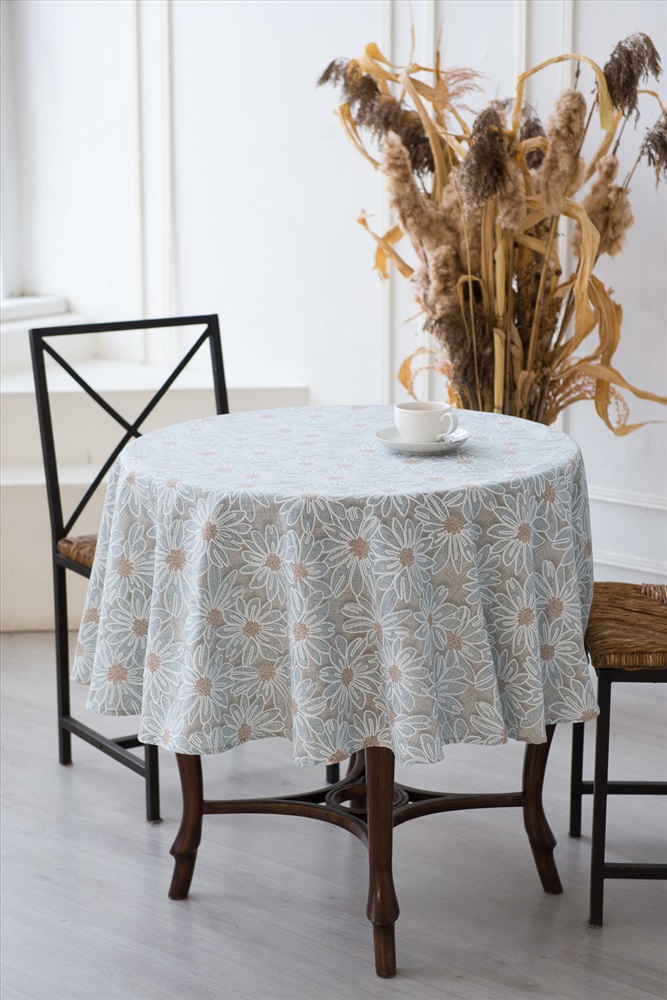 Сезонность: лето | осень | весна | зима Круглая скатерть София диаметром 150см отлично подойдет для классического круглого кухонного стола. Изделие выполнено из высококачественной рогожки плотностью 170 грамм, что позволяет использовать ее ежедневно и часто стирать. Стильные ромашки на сером фоне подойдут под любой интерьер.