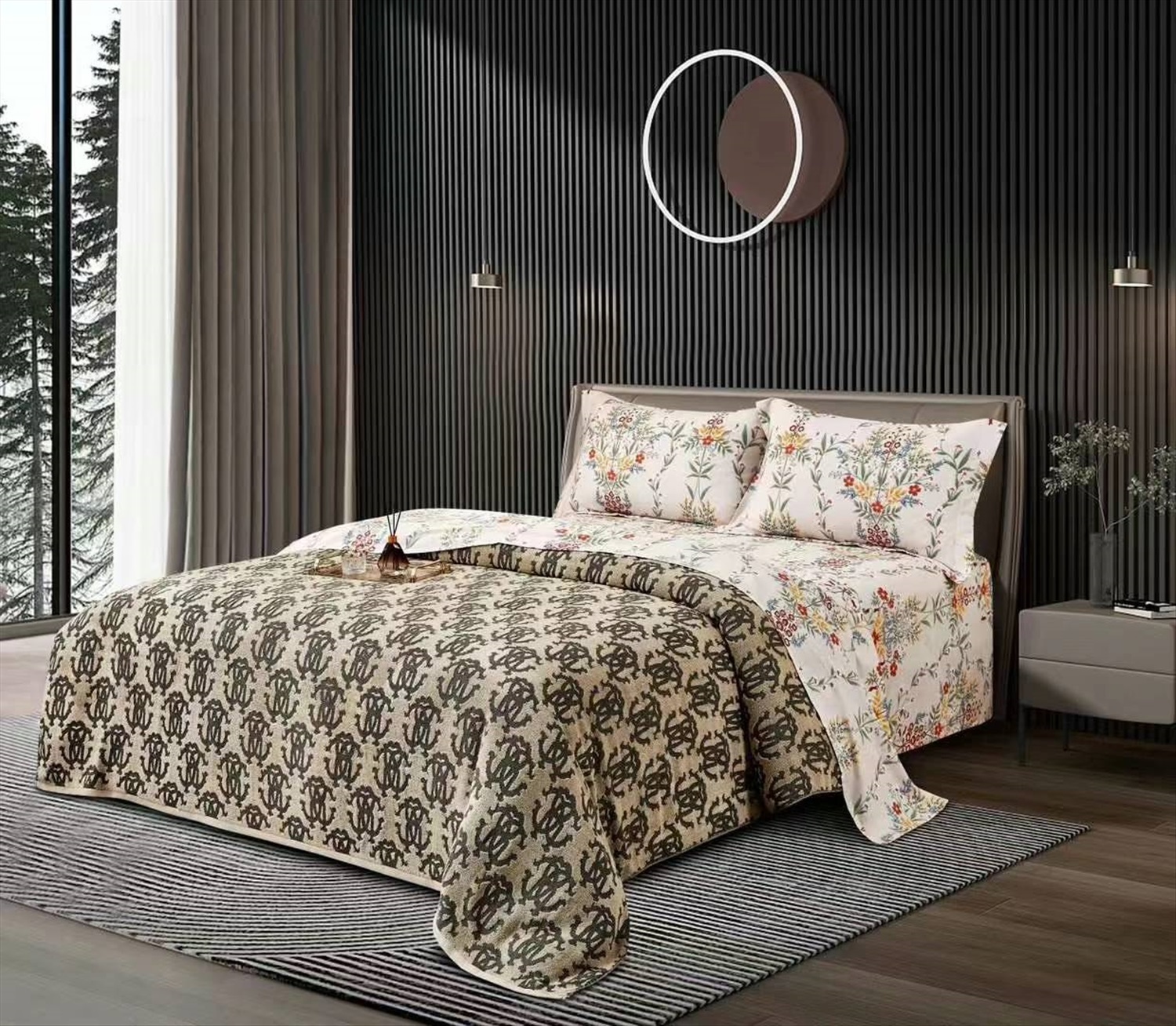 Скидки🔥Кавалли плед + простыня+ наволочки 100% люкс хлопок Простыня наволочки сатин В набор входит: Плед махровый: 200-230см-1шт Простыня сатин 230*250см-1шт Наволочки сатин 50*70см-2шт