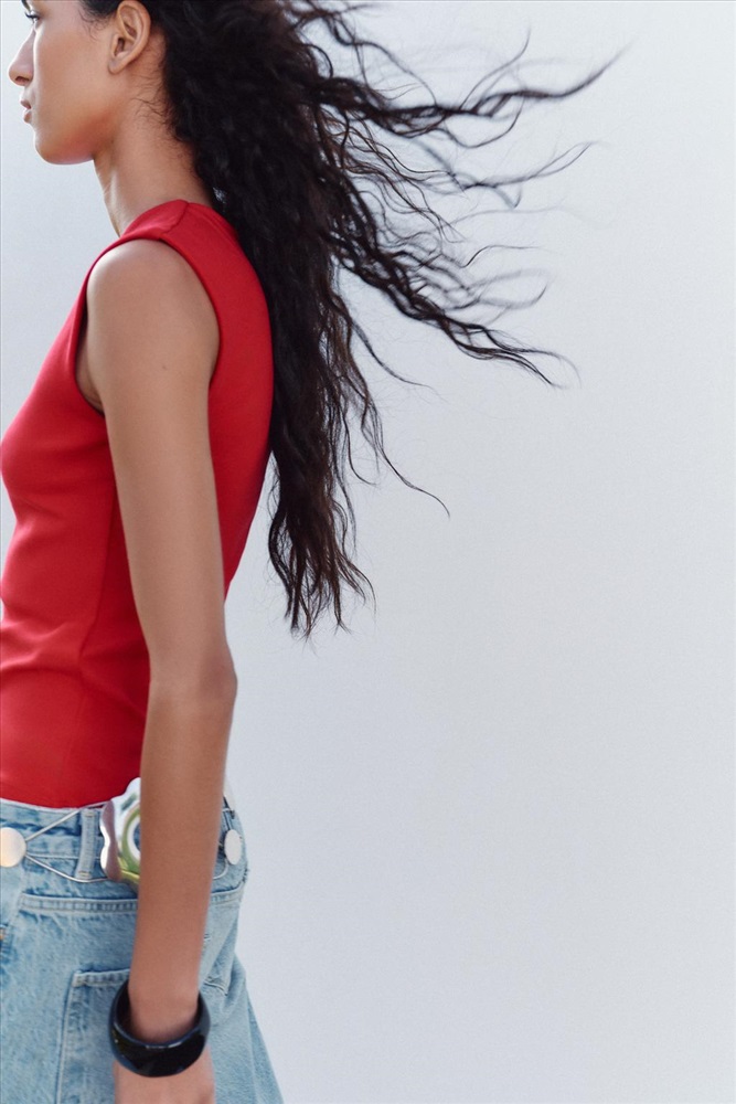 Sleeveless round neck top made of a spun cotton blend. COMPOSITION, CARE & ORIGIN COMPOSITION OUTER SHELL 95% cotton LINING 95% cotton Which contains at least: OUTER SHELL 95% OCS certified organically grown cotton 5% RCS certified recycled elastane LINING 95% OCS certified organically grown cotton 5% RCS certified recycled elastane CERTIFIED MATERIALS OCS CERTIFIED ORGANICALLY GROWN COTTON This fibre is produced using no artificial fertilisers or pesticides and is grown from seeds that have not been genetically modified. We are currently working with the Organic Content Standard (OCS) that monitors the process from the source to the end product. Certified by Intertek 193341 More information RCS CERTIFIED RECYCLED ELASTANE This material is made from recycling waste generated during the manufacturing process of this material. Transforming waste into new materials helps limit the extraction of raw materials. It is certified to the Recycled Claim Standard (RCS), which verifies the recycled content and tracks it from source to final product. Certified by Intertek 193341 More information CARE Caring for your garments to extend their useful life. Lower temperature washes and delicate spin cycles are gentler on garments and help to protect the colour, shape and structure of the fabric.