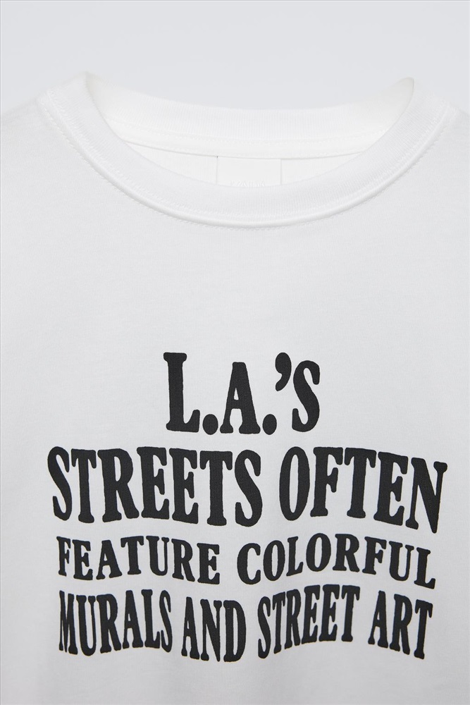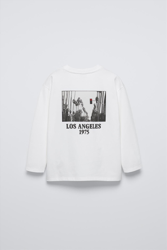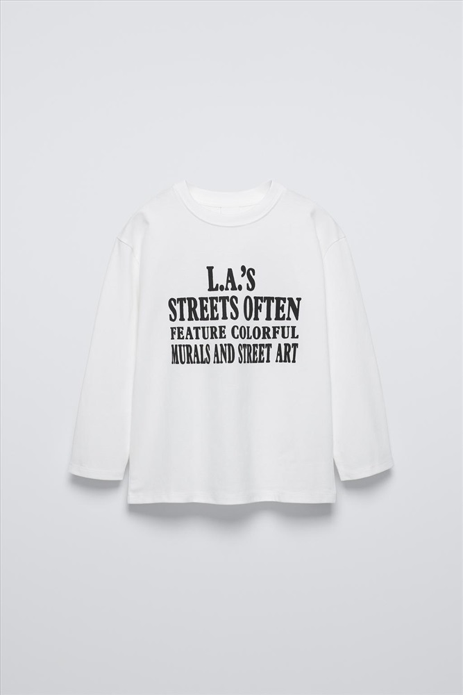 Round neck T-shirt with long sleeves. Slogan print on the front and back.
