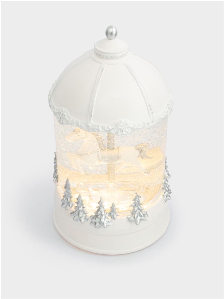 Снежный фонарь с подсветкой. Размер: 12x12х20 см. Материал: АБС-пластик, поликарбонат, полирезин, наполнение - вода, блестки. Работает от 3-х батареек типа АА (не поставляются в комплекте). Рекомендуется протирать мягкой влажной тканью. Беречь от механических повреждений