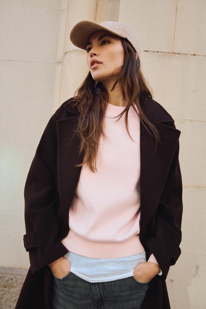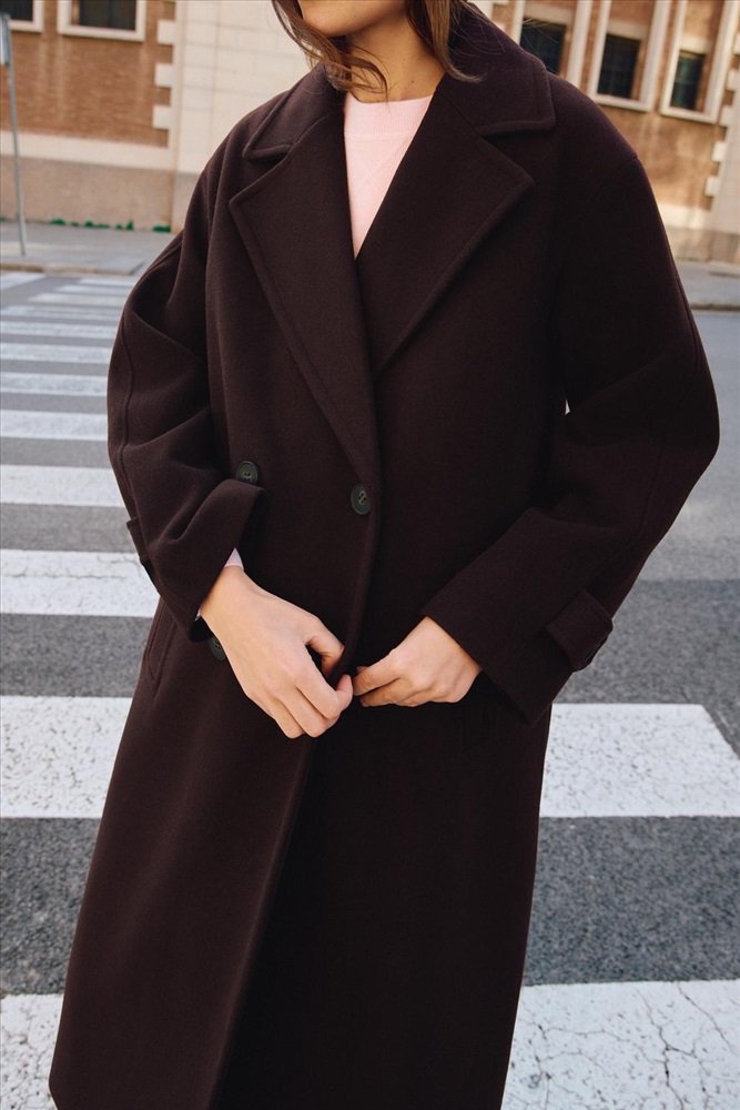 Oversized coat with a lapel collar and long sleeves with tab and button detail. Featuring front welt pockets and double-breasted button fastening. COMPOSITION, CARE & ORIGIN COMPOSITION OUTER SHELL 100% polyester LINING 100% polyester Which contains at least: OUTER SHELL 100% RCS certified recycled polyester LINING 100% RCS certified recycled polyester CERTIFIED MATERIALS RCS CERTIFIED RECYCLED POLYESTER Nowadays, recycled polyester is mainly made from PET plastic waste. This is a type of plastic that is widely used in a variety of items, such as plastic bottles. Using recycled materials helps limit the production of virgin polyester fibre. It is certified to the Recycled Claim Standard (RCS), which verifies the recycled content and tracks it from source to final product. Certified by Intertek 193341 More information CARE Caring for your garments to extend their useful life. To keep your jackets and coats clean, you only need to air them out and go over them with a cloth or a clothes brush. This process is gentler on fabrics and helps to reduce the impacts of washing.