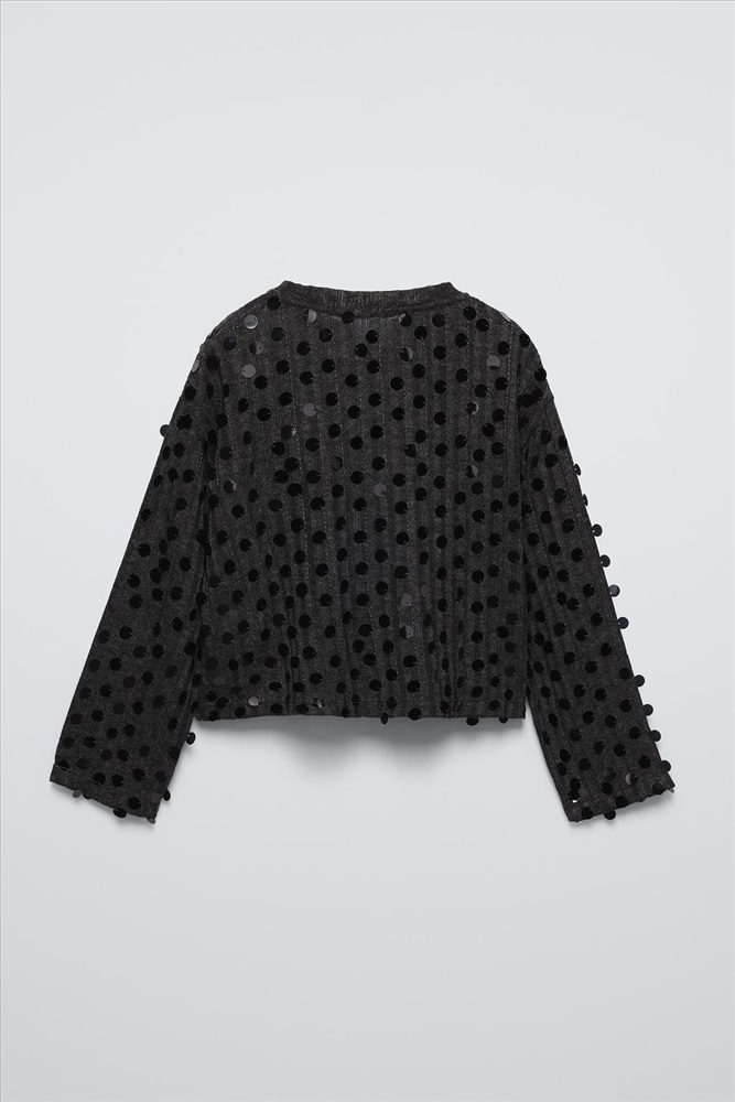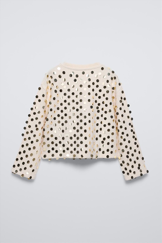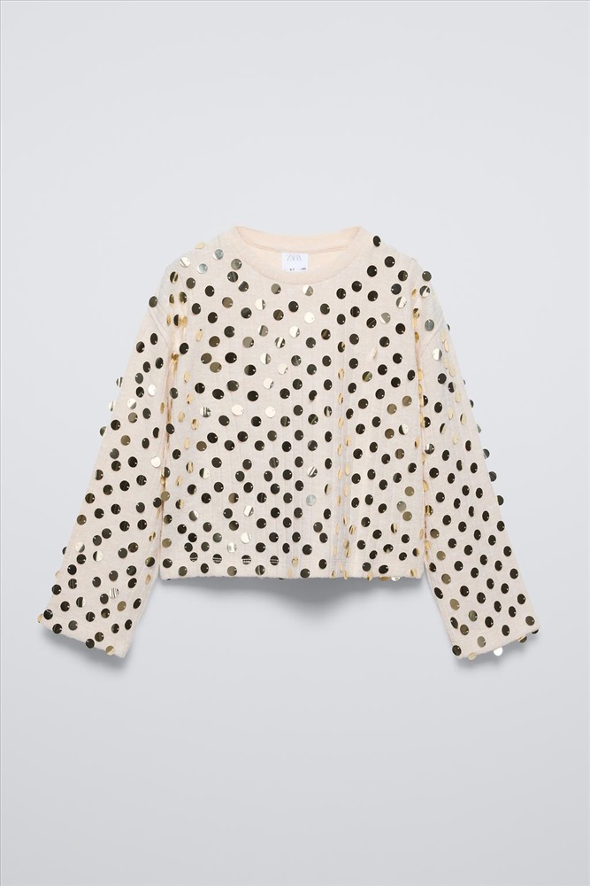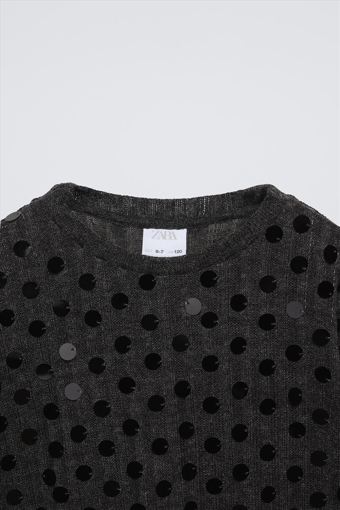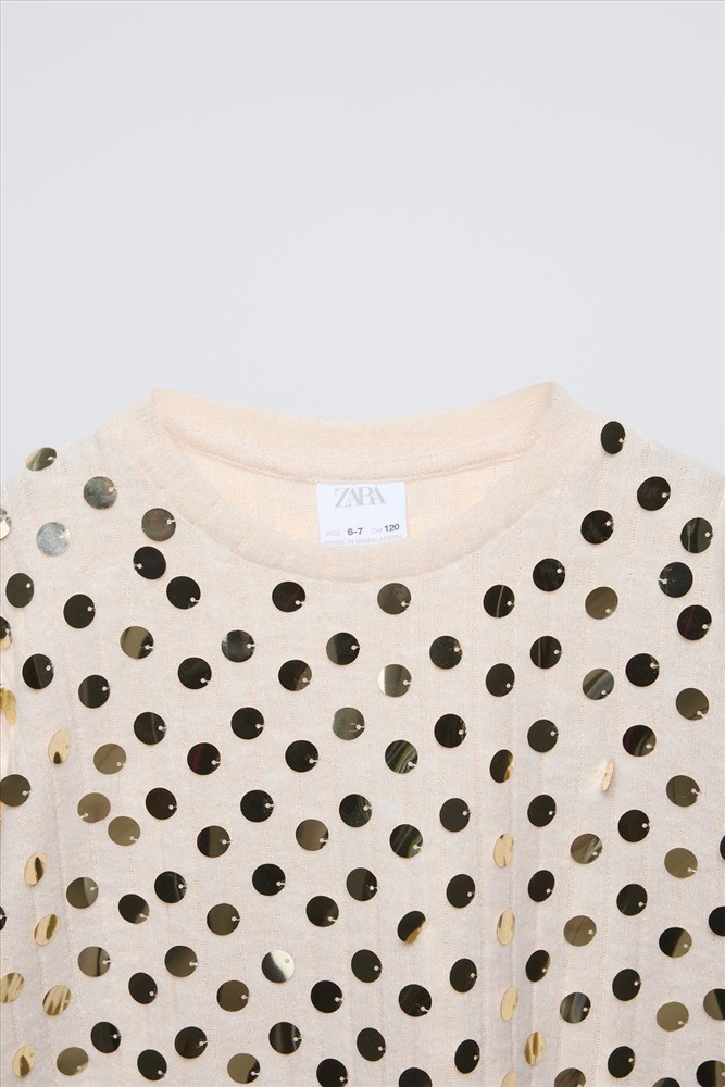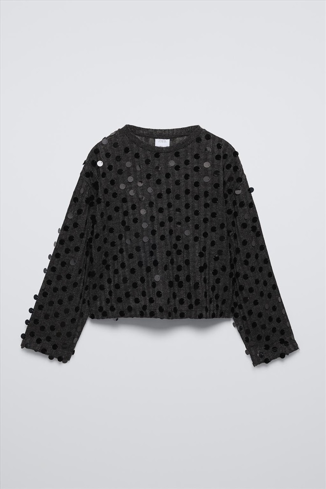 Long sleeve T-shirt with a round neck. Sequin appliqués.