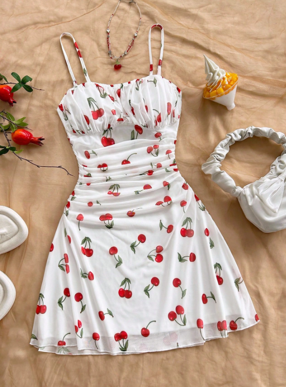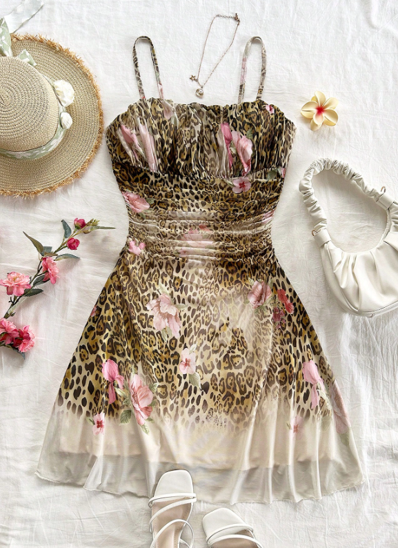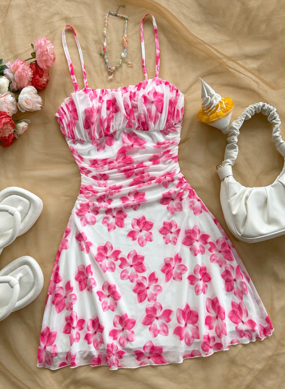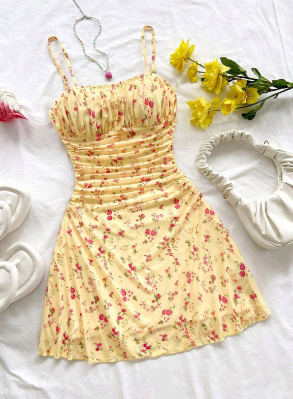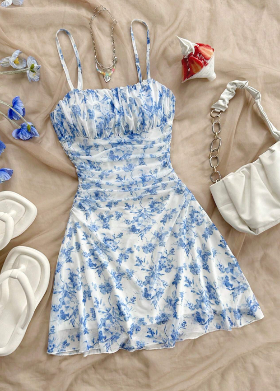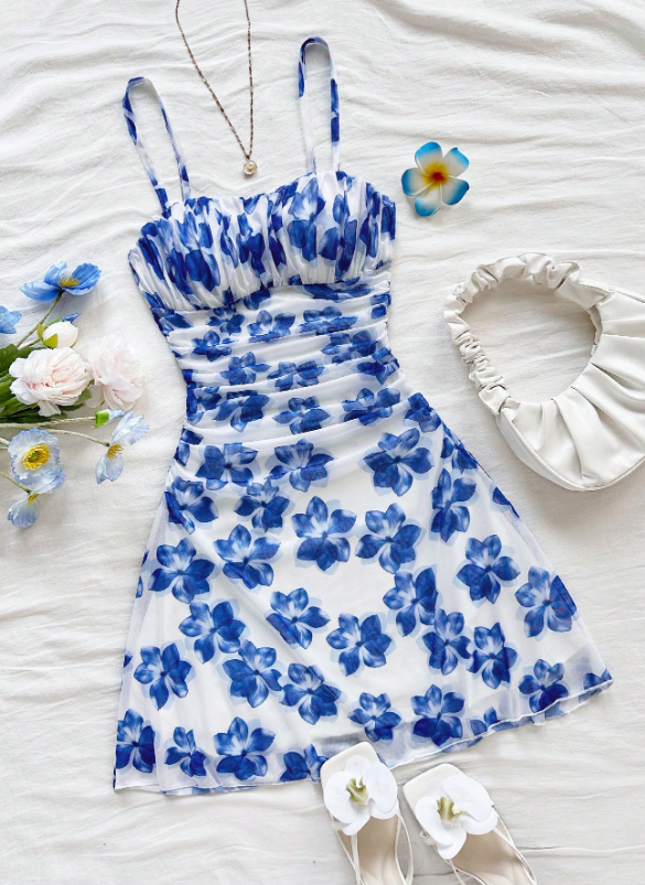 Soleia Women's Summer Vacation Blue & White Floral Mesh Slip Dress Summer Dress Vacation Outfits Women Holiday Dresses For Women Floral Dress Yellow Dress