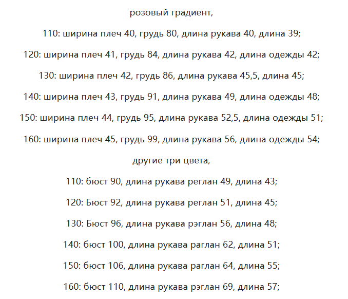 Размер: 110, 120, 130, 140, 150, 160