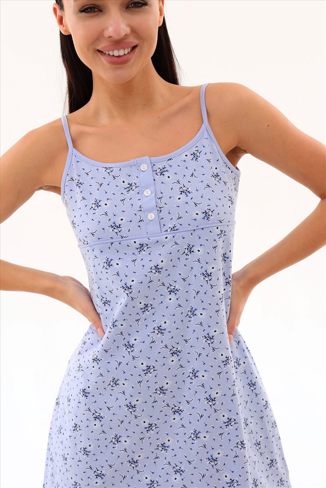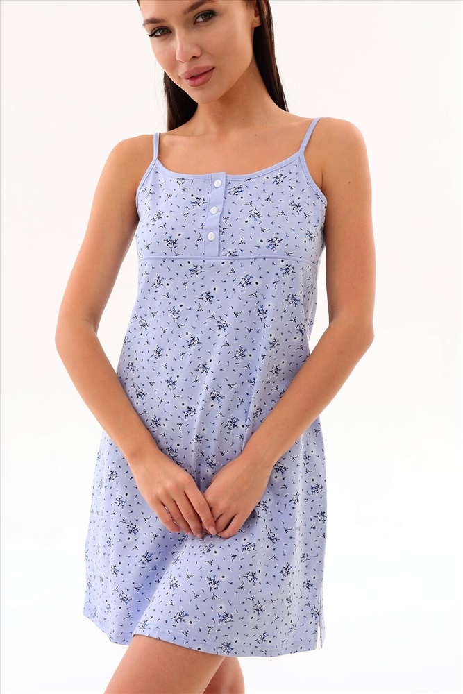 ID товара: 947660 Состав: 100% Хлопок Сезон: Демисезон Длина: Удлиненная Фасон: Прямой Рукав: без рукавов Вырез горловины: На бретельках Основная ткань: Хлопок Стиль: Повседневный Вид ткани: Кулирка Страна бренда: Россия Страна производства: Россия Сорочка средней длины из мягкого хлопкового трикотажа. Спереди на лифе планка на 3 - х пуговицах и петлях. По линии кокетки кантик, по низу изделия в боковых швах разрезы. Вы можете носить нашу ночную сорочку в любое время года: она подойдет для долгих теплых весенних и летних ночей, а так же для создания милого образа зимой и осенью. Комментарии к товару