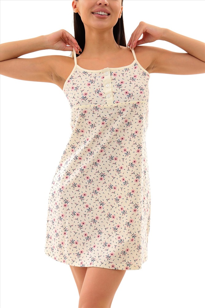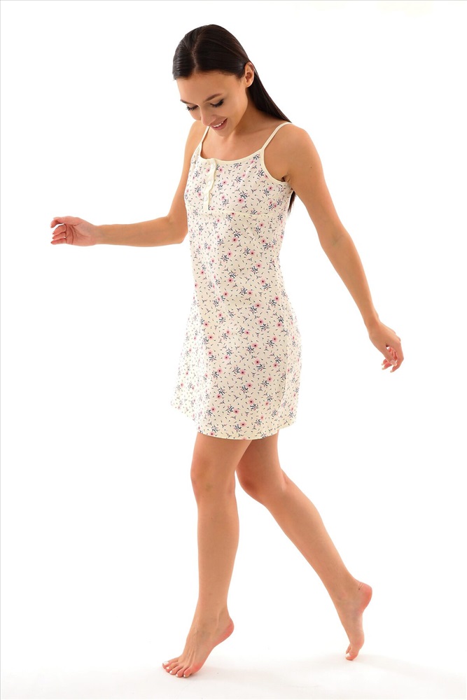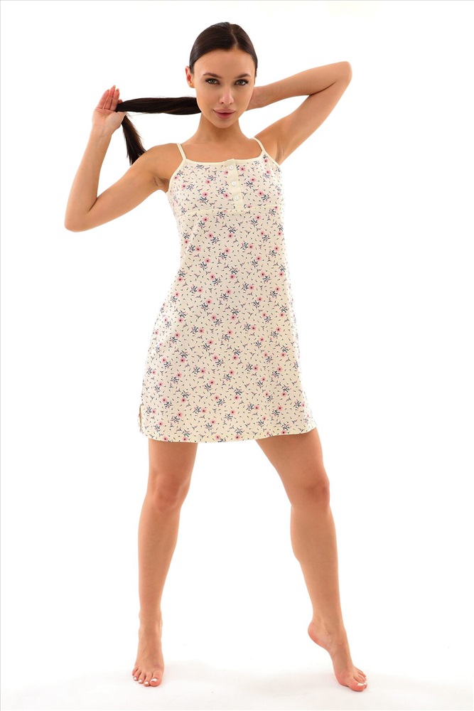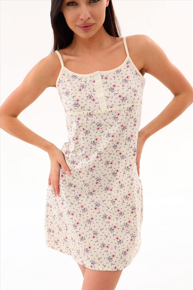 Страна производства: Россия Сорочка средней длины из мягкого хлопкового трикотажа. Спереди на лифе планка на 3 - х пуговицах и петлях. По линии кокетки кантик, по низу изделия в боковых швах разрезы. Вы можете носить нашу ночную сорочку в любое время года: она подойдет для долгих теплых весенних и летних ночей, а так же для создания милого образа зимой и осенью.