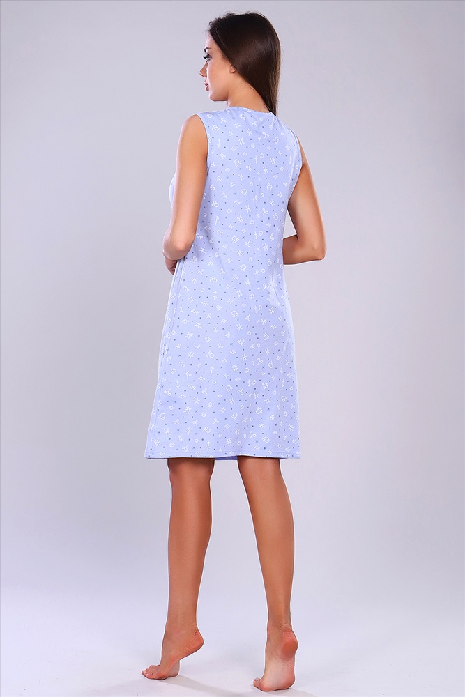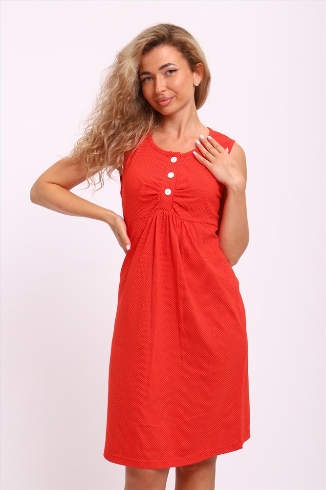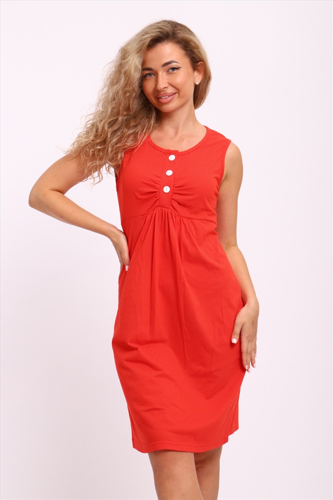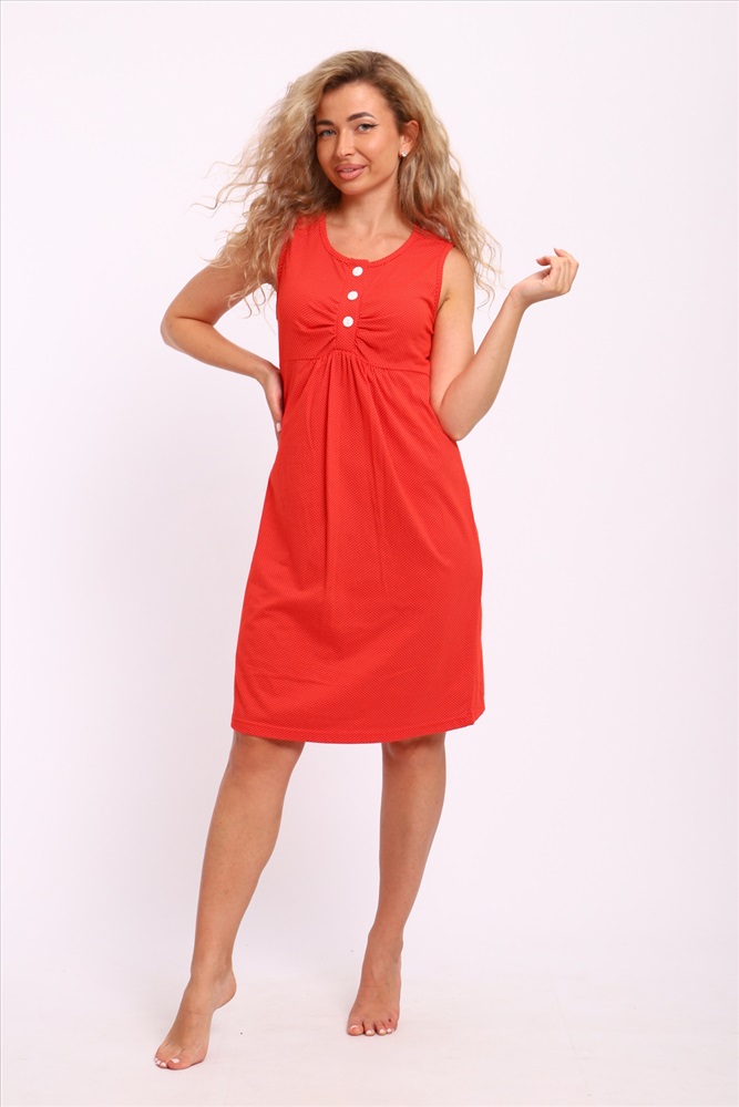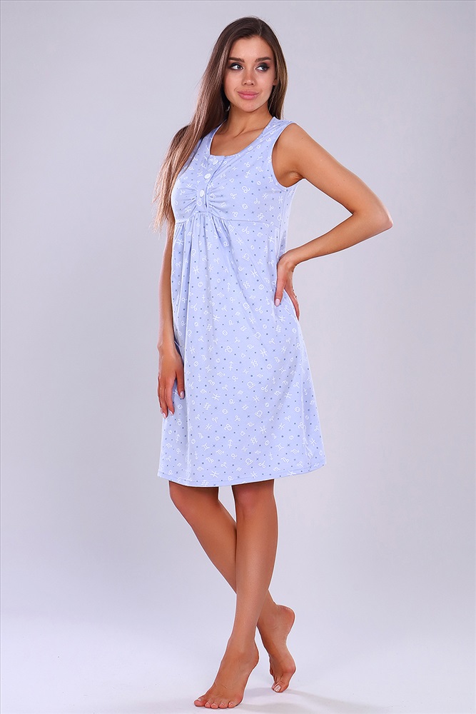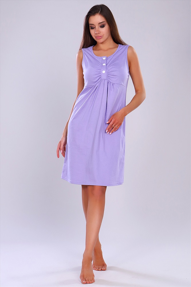 Состав: хлопок 100% Модель: Сорочка 15230 Тип товара: сорочка Материал: кулирка | кулирка Бренд: Натали Суслова Длина: средняя длина Назначение: для дома НДС: Без НДС Отделка: со складками Рисунок: горошек | разное Рукав: без рукава Сезонность: лето | осень | весна | зима Силуэт: свободный Скидка: любая | от 10% и больше | от 30% и больше Стиль: домашний Застежка: пуговицы Женская сорочка без рукавов. Данная модель выполнена из трикотажного полотна кулирка (хлопок 100%). Полочка отрезная под грудью, шов фигурный. Верхняя часть полочки (лиф) имеет сборку по центру груди и планку на пуговках. Верх нижней части полочки по центру также со сборкой. Горловина и пройма изделия обработаны окантовкой из основной ткани. Отлично подходит для беременных и кормящих мам. Таблица размеров и веса