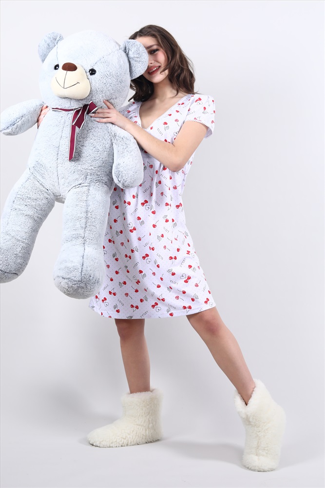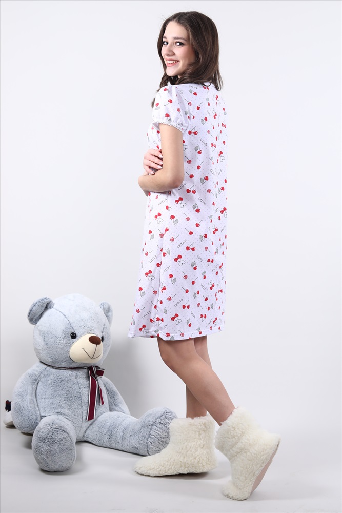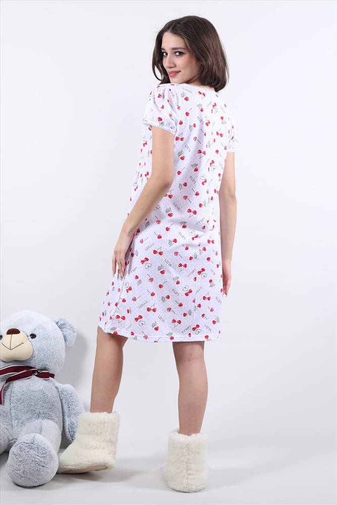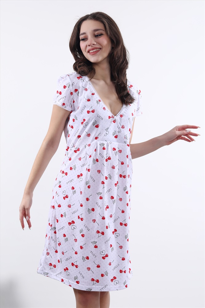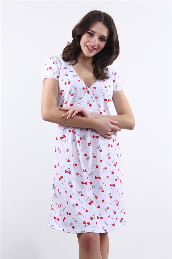 Состав: хлопок 100% Модель: Сорочка 15414 Тип товара: сорочка Материал: кулирка | кулирка Бренд: Натали Суслова Длина: средняя длина Назначение: для дома НДС: Без НДС Рисунок: фуд-принт Рукав: короткий рукав Сезонность: лето | осень | весна | зима Силуэт: полуприлегающий Стиль: домашний Застежка: кнопка Женская сорочка с V-образным вырезом на кнопках. Отличный вариант для сна и отдыха, идеально подходит для кормления малыша. Данная модель выполнена из приятного к телу материала, трикотажного полотна кулирка (100% хлопок). Пройма и горловина обработана кружевной резинкой. Таблица размеров и веса