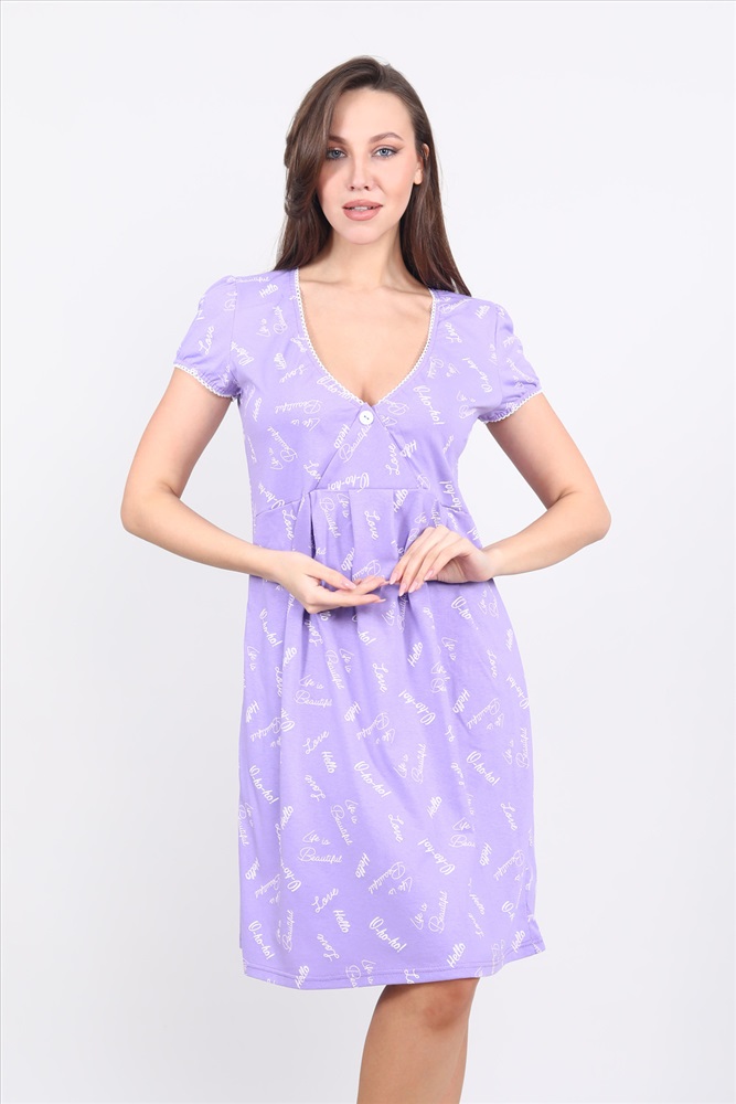 Застежка: пуговицы Сорочка женская с рукавом для беременных и кормящих. Данная модель выполнена из трикотажного полотна кулирка (хлопок 100%). Функциональная полочка на пуговице облегчит кормление вашего малыша. Отлично подходит для сна и отдыха дома.