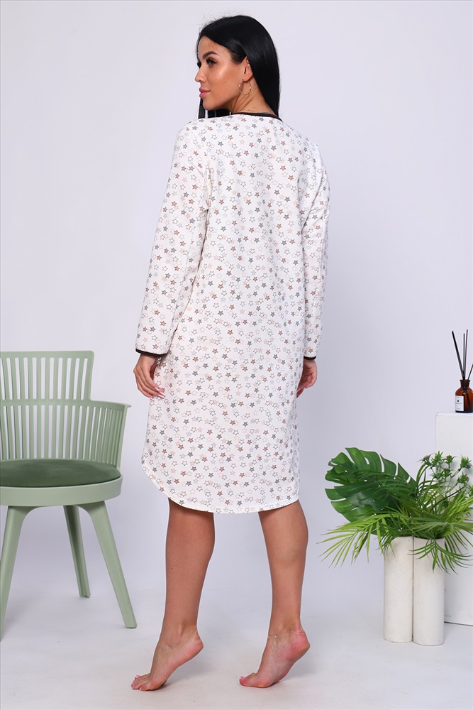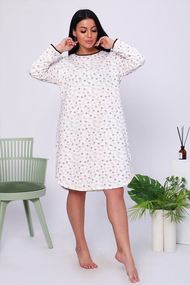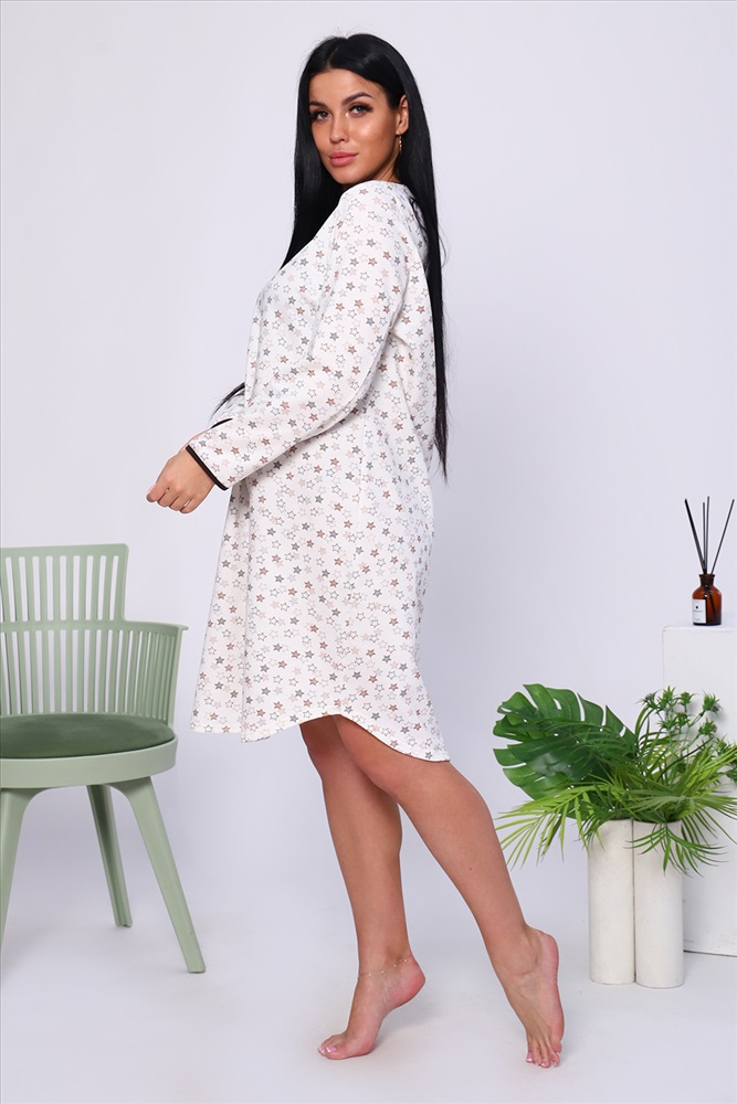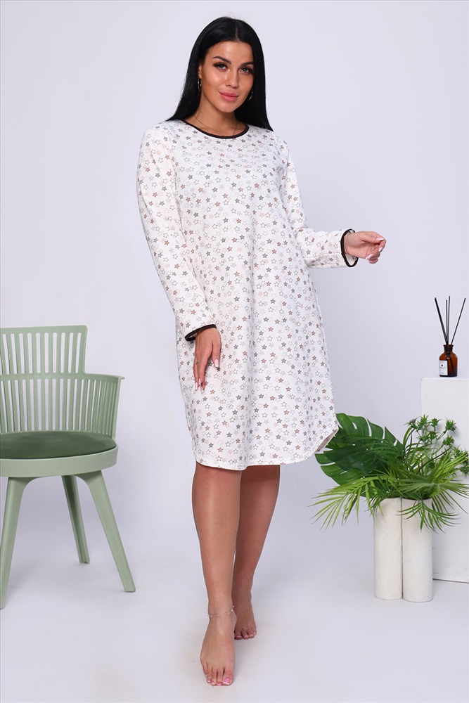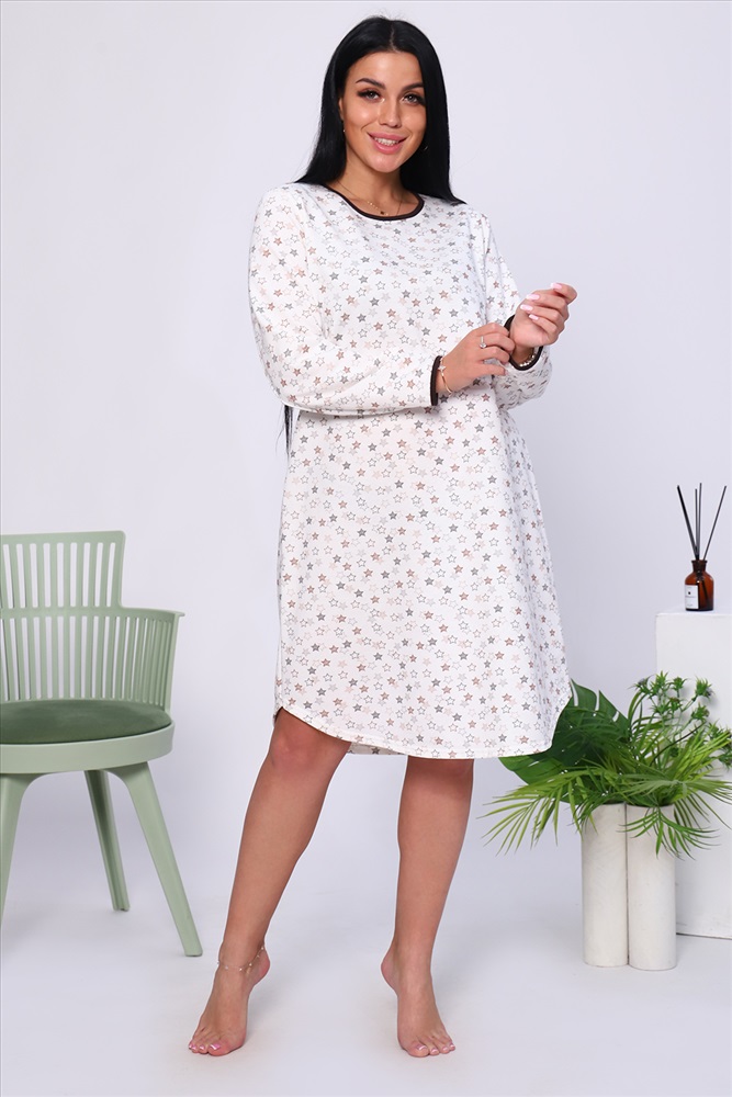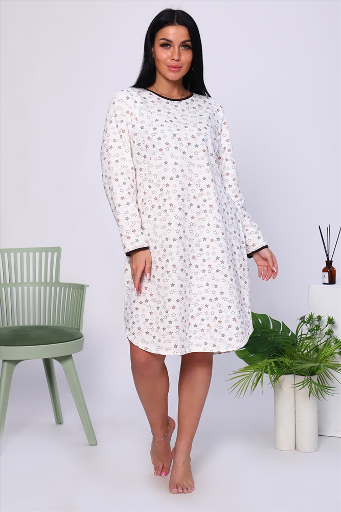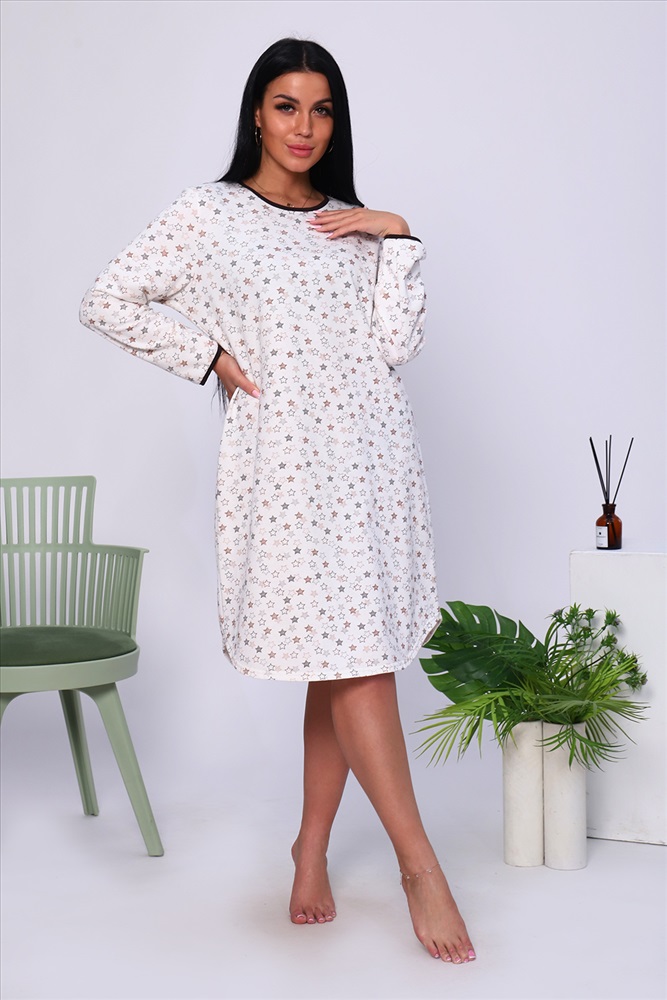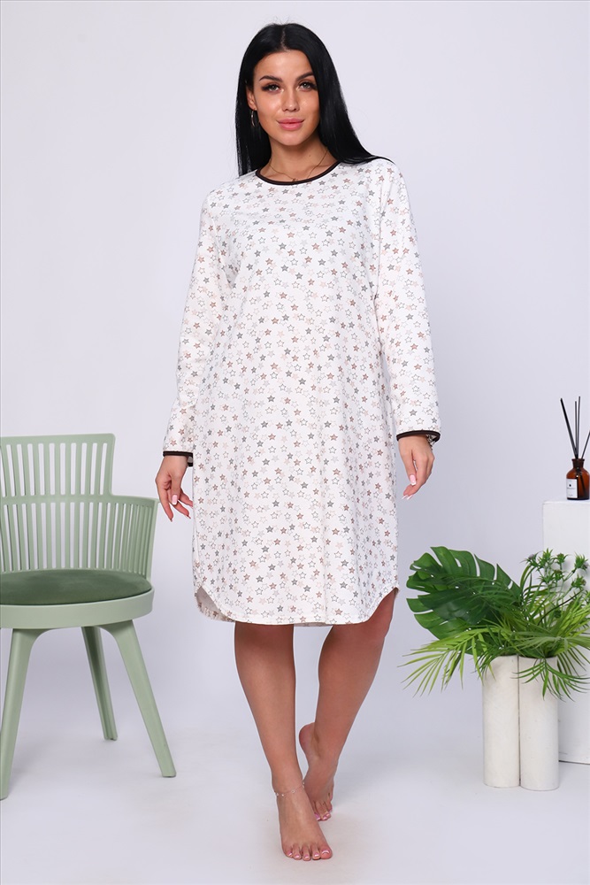 Состав: 100% хлопок Модель: Сорочка 18025 Тип товара: сорочка Материал: футер 2-х нитка с начесом | футер 2-х нитка с начесом Бренд: Натали Суслова Длина: средняя длина Карман: без карманов Назначение: для дома НДС: Без НДС Особенности: с начесом Рейтинг: Рейтинг 4 и выше Рисунок: геометрия | горошек | крапинка Рукав: длинный рукав Сезонность: осень | весна | зима Силуэт: приталенный | свободный Стиль: домашний Воротник: без воротника Застежка: без застежки Тёплая уютная сорочка из футера с начесом. Слегка приталенный силуэт, длина чуть ниже колена, комфортный длинный рукав, округлый вырез горловины. Низ рукава и горловина обработаны контрастной окантовкой. Подол изделия подогнут на плоскошовной машине. Таблица размеров и веса