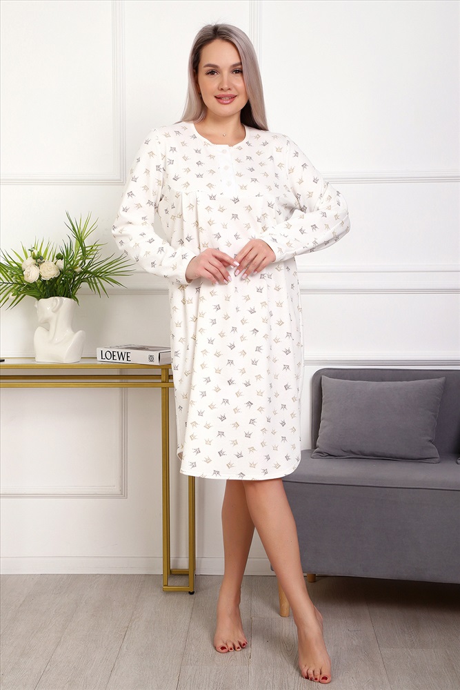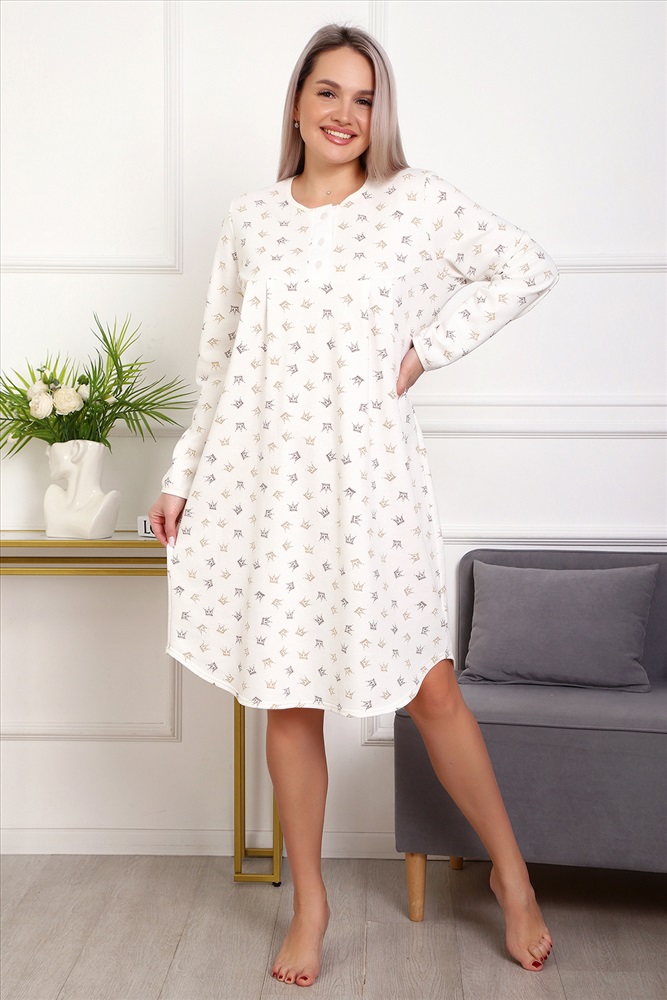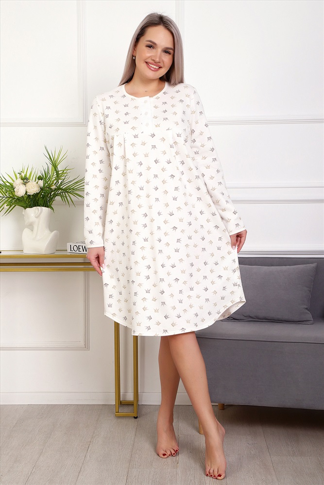 Состав: 100 % хлопок Модель: Сорочка 18060 Тип товара: сорочка Материал: футер 2-х нитка с начесом | футер 2-х нитка с начесом Бренд: Натали Суслова Длина: средняя длина Карман: без карманов Назначение: для дома НДС: Без НДС Особенности: с начесом Отделка: со складками Рисунок: горошек | разное Рукав: длинный рукав Сезонность: лето | осень | весна | зима Силуэт: свободный Стиль: домашний Воротник: без воротника Застежка: пуговицы Теплая и приятная к телу сорочка из футера с начесом. Длинный рукав, кокетка с планкой на пуговицах. Фасон достаточно свободный за счет защипов на полочке. Низ изделия фигурный, подшит на плоскошовной машине. Горловина и рукава обработаны окантовкой. Таблица размеров и веса