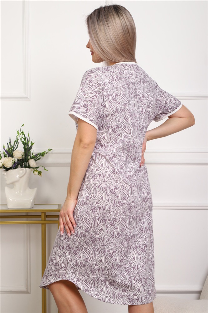 Состав: 100% хлопок Модель: Сорочка 18063 Тип товара: сорочка Материал: кулирка | кулирка Бренд: Натали Суслова Длина: средняя длина Карман: без карманов Назначение: для дома НДС: Без НДС Отделка: со складками Рисунок: разное Рукав: короткий рукав Сезонность: лето | осень | весна | зима Силуэт: прямой | свободный Стиль: домашний Воротник: без воротника Застежка: пуговицы Приятная к телу сорочка из кулирного хлопкового полотна . Удобный короткий рукав, кокетка с планкой на пуговицах. Фасон достаточно свободный за счет хорошей сборки на полочке. Низ изделия фигурный, подшит на плоскошовной машине. Горловина и рукава обработаны окантовкой. из кулирки, Таблица размеров и веса