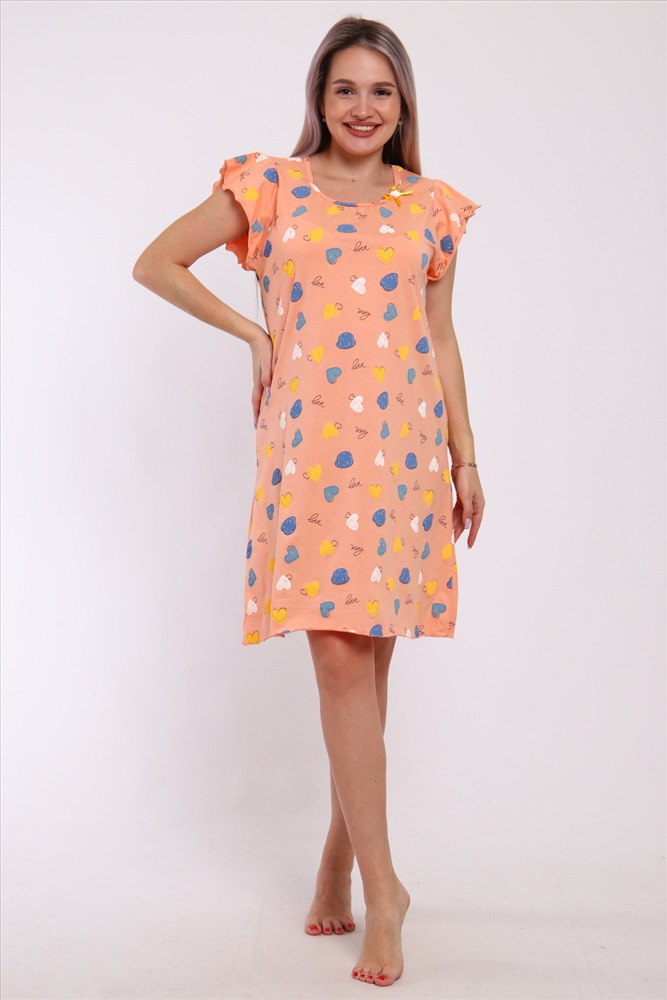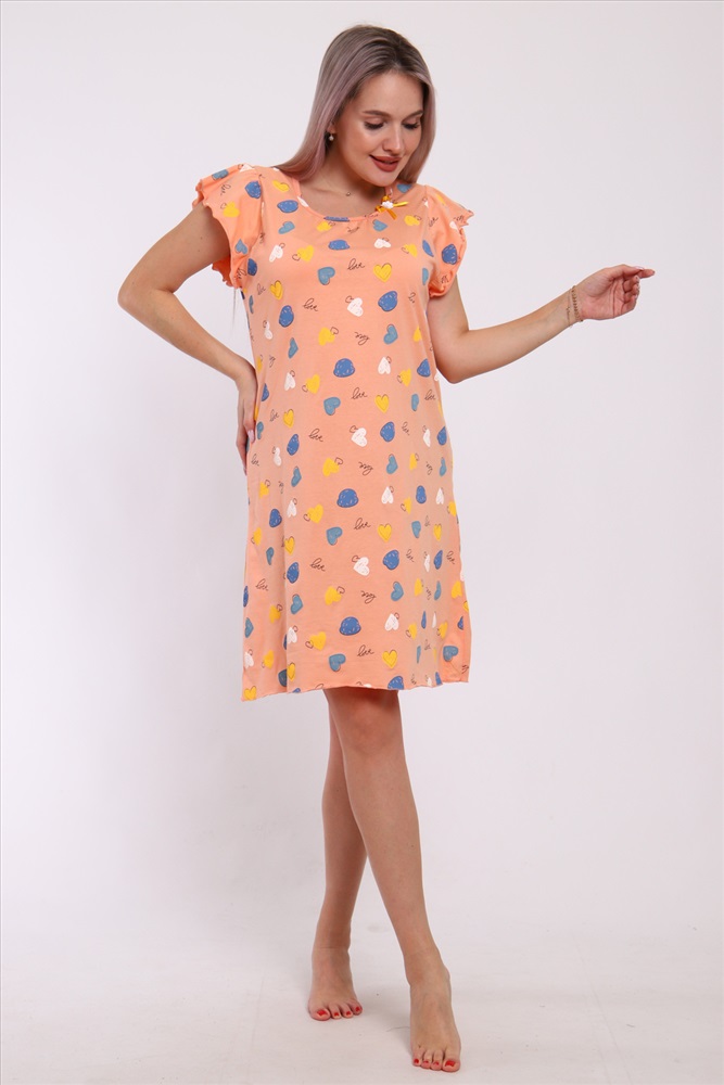 Состав: 100% хлопок Модель: Сорочка 210 Тип товара: сорочка Материал: кулирка | кулирка Бренд: Моя любовь Длина: средняя длина Назначение: для дома НДС: Без НДС Отделка: с волнистым краем Рисунок: сердечки Рукав: короткий рукав Сезонность: лето | осень | весна | зима Силуэт: свободный Стиль: домашний Сорочка женская прямого кроя. Рукав и низ обработан краевка. Таблица размеров и веса
