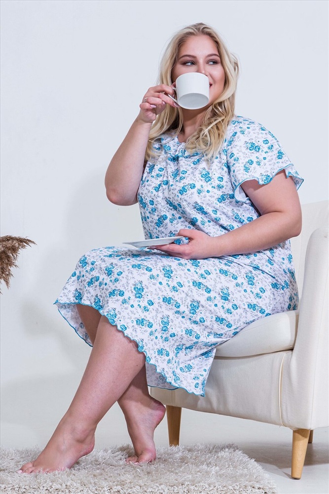 ID товара: 766772 Состав: Хлопок 100%. Сезон: Весна/Лето Длина: Ниже колена Фасон: Трапеция Рукав: Короткий Вид застежки: Без застежки Декоративные элементы: Рюши Основная ткань: 100% хлопок | Кулирка Стиль: Повседневный Страна бренда: Россия Страна производства: Россия Сорочка женская с симпатичной рюшей по горловине. Очень свободный и удобный крой. Рукав-реглан не стесняет движения рук. Обработка рукава и низа изделия в виде лёгкой волны придаёт лёгкость и воздушность. Комментарии к товару
