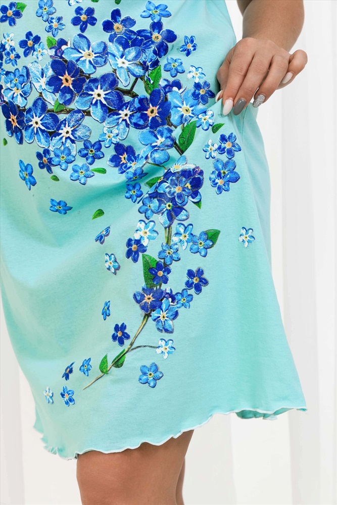 Состав: Хлопок 100% Модель: Сорочка 21563 Тип товара: сорочка Материал: кулирка | кулирка Бренд: Натали Суслова Длина: средняя длина Назначение: для дома НДС: 5% Отделка: с воланами | с волнистым краем Рейтинг: Рейтинг 4 и выше Рукав: короткий рукав Сезонность: лето | осень | весна | зима Силуэт: свободный Стиль: домашний Сорочка женская с симпатичной рюшей по горловине. Очень свободный и удобный крой. Рукав - реглан не стесняет движения рук. Обработка рукава и низа изделия в виде лёгкой волны придаёт лёгкость и воздушность. Шикарный принт в виде россыпи незабудок. Оттенок ментола может отличаться от фото Таблица размеров и веса