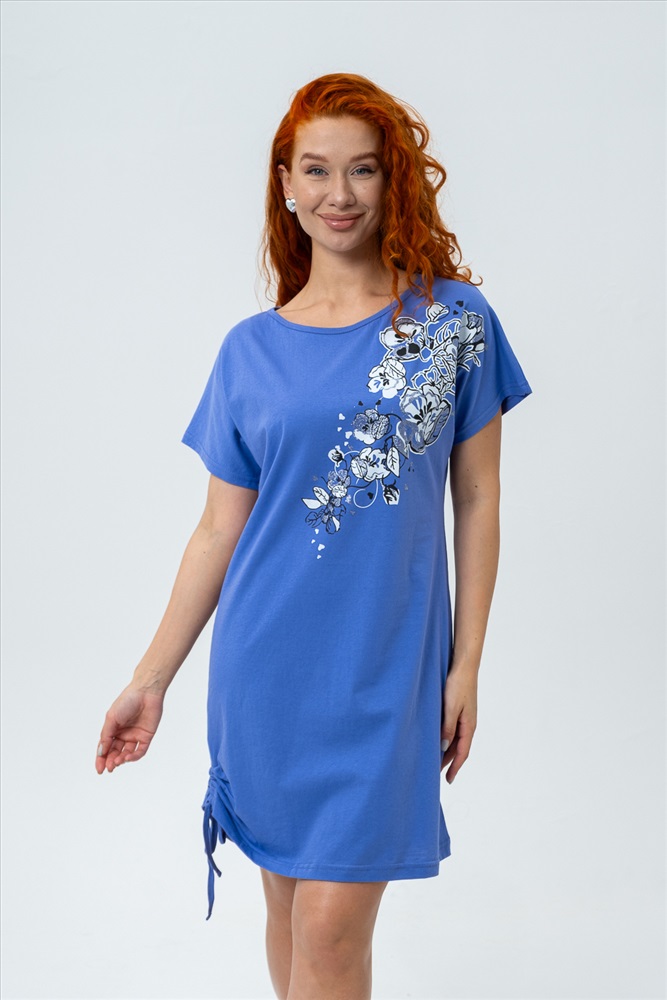 Стиль: домашний Удобная лёгкая ночная сорочка - универсальная вещь, дополняющая гардероб любой девушки. Её можно использовать в качестве домашней туники. Нежный цветочный рисунок, расположенный от плеча по диагонали и кулиска на противоположной стороне принта снизу делают модель элегантной. Очень удобный крой: цельнокроенный рукав, спущенная пройма, горловина - лодочка. Длина рукава в измерениях указана от точки основания шеи. Фасон подойдёт для всех типов фигуры.