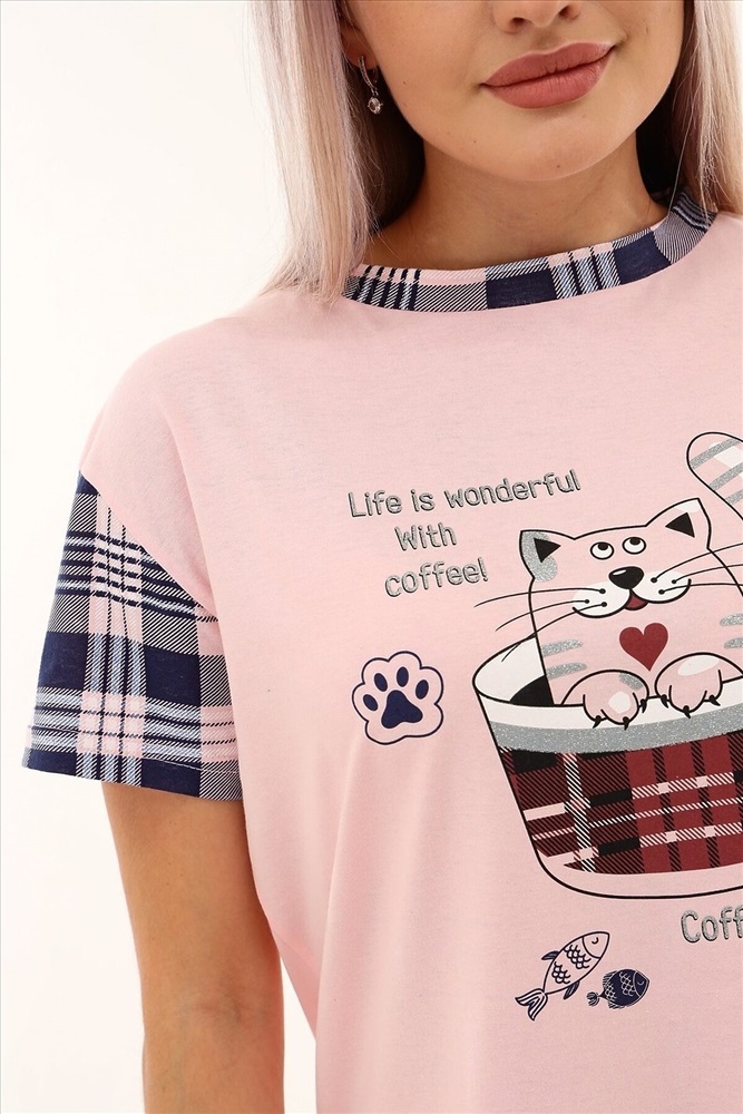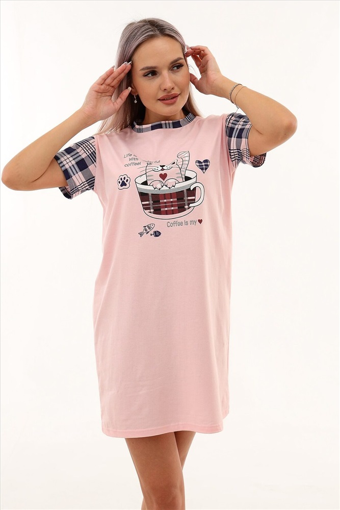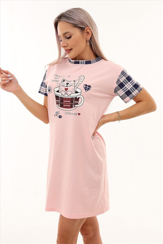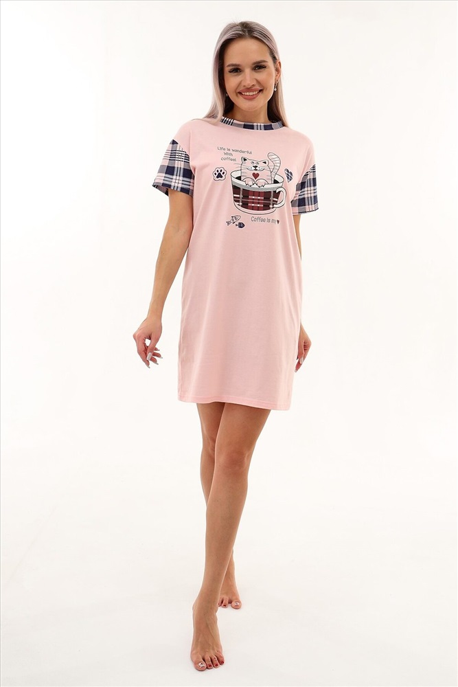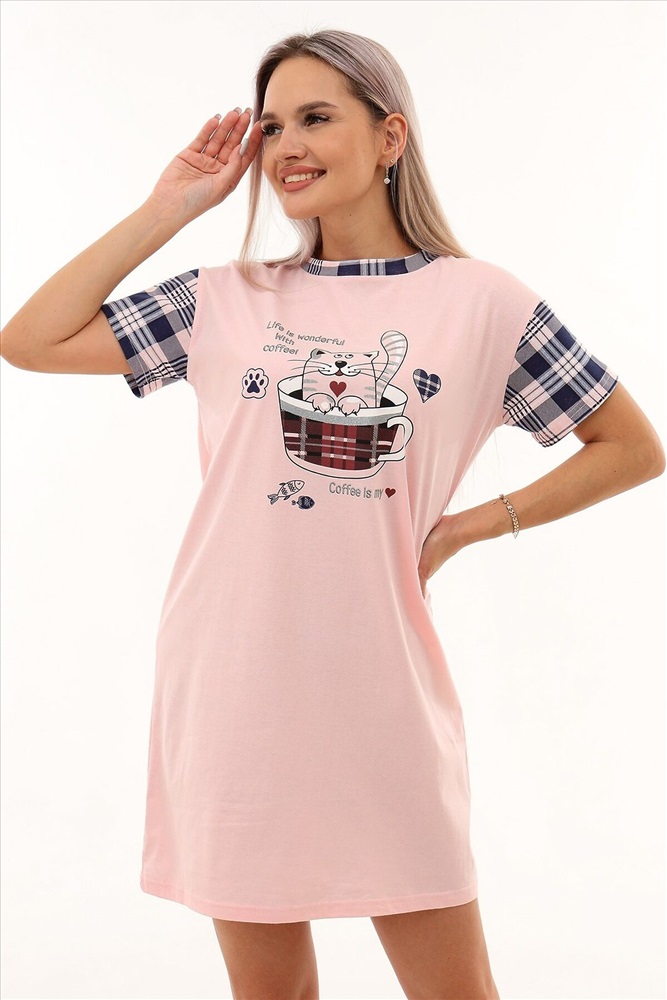Страна производства: Россия Молодёжная сорочка в виде удлинённой свободной футболки с милым симпатичным принтом. Можно использовать в качестве домашней туники.