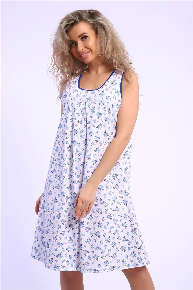 ID товара: 988874 Состав: Хлопок 100 % Сезон: Демисезон Длина: Ниже колена Фасон: Свободный Рукав: без рукавов Декоративные элементы: Принт Основная ткань: Хлопок Вид ткани: Кулирка Страна бренда: Россия Страна производства: Россия Сорочка свободного кроя маечного фасона со встречной складкой под кокеткой. По кокетке нашиты ромашки. Подходит для беременных. Комментарии к товару