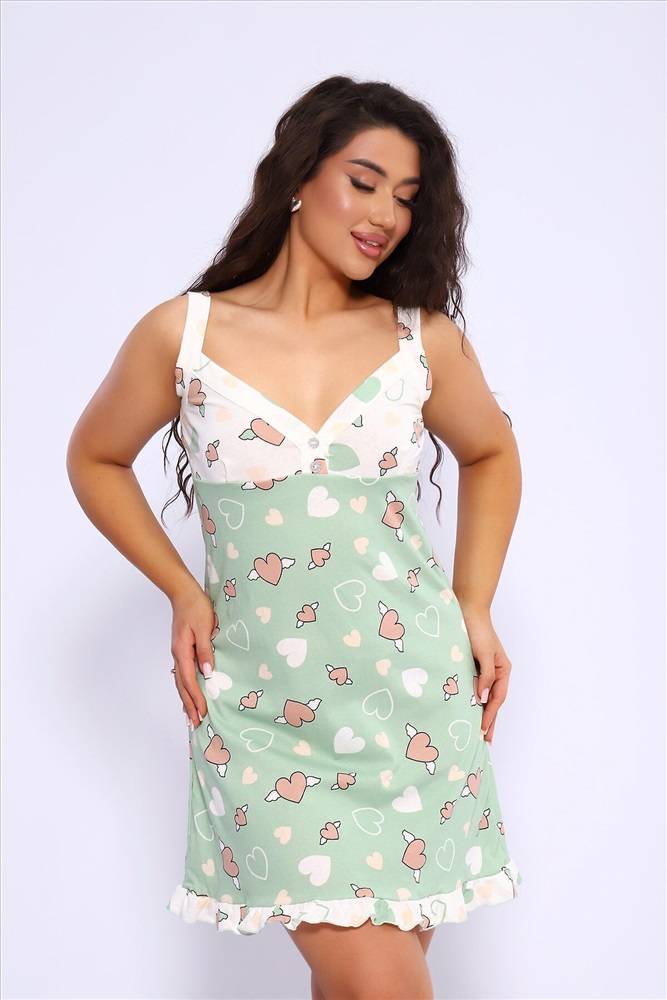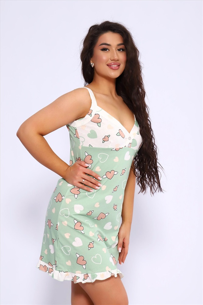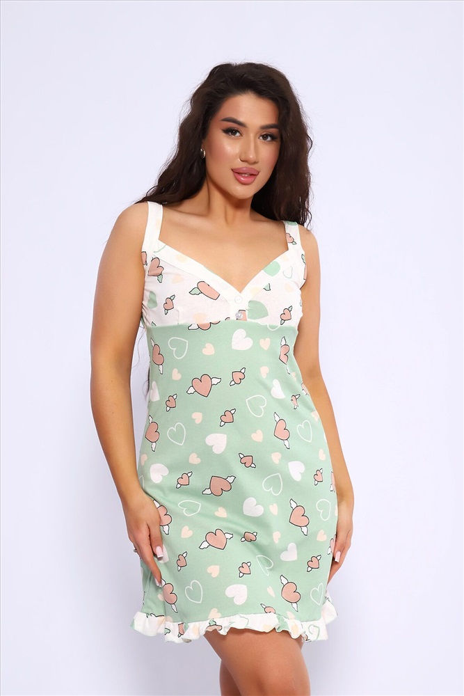 Страна производства: Россия Сорочка на широких бретелях полуприлегающего силуэта с кокетливыми рюшами по низу изделия.
