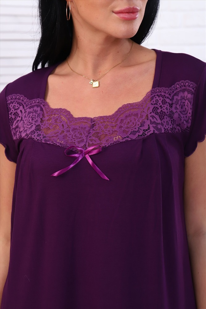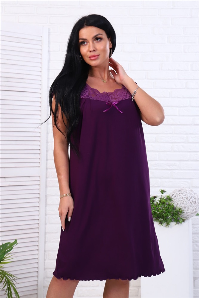 Страна производства: Россия Сорочка женская. Отделка по груди из кружевной кокетки. Короткий рукав "крылышко". Низ изделия и рукав обработаны краевым швом.