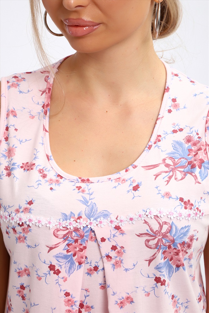 Состав: хлопок 100% Модель: Сорочка 30148 Тип товара: сорочка Материал: кулирка | кулирка Бренд: Натали Суслова Длина: средняя длина Карман: без карманов Назначение: для дома НДС: Без НДС Отделка: со складками Рисунок: цветы Рукав: без рукава Сезонность: лето | осень | весна | зима Силуэт: свободный Стиль: домашний Воротник: без воротника Застежка: без застежки Сорочка свободного покроя маечного типа с кокеткой без рукава. По кокетке нашиты декоративные ромашки. Под кокеткой на юбке встречная складка. Подходит для беременных. Таблица размеров и веса