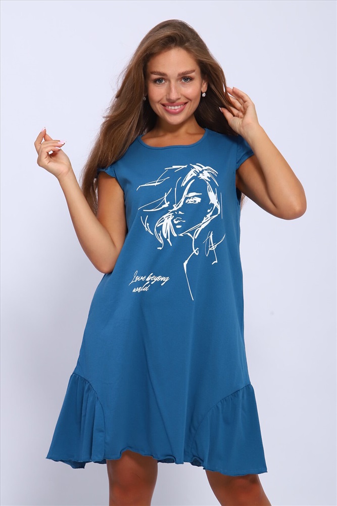 ID товара: 1033527 Состав: 100% Хлопок Сезон: Демисезон Длина: До колена Фасон: Свободный Рукав: короткие Декоративные элементы: Принт Основная ткань: Хлопок Вид ткани: Кулирка Страна бренда: Россия Страна производства: Россия Классная, милая сорочка, можете носить как домашнее платье весь день. Короткая, рукав ИК крылышки. Комментарии к товару