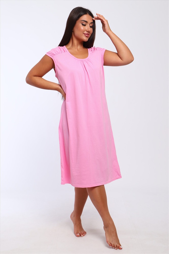Страна производства: Россия Сорочка женская свободного кроя. Сборка над линией груди. Длина чуть ниже колена.