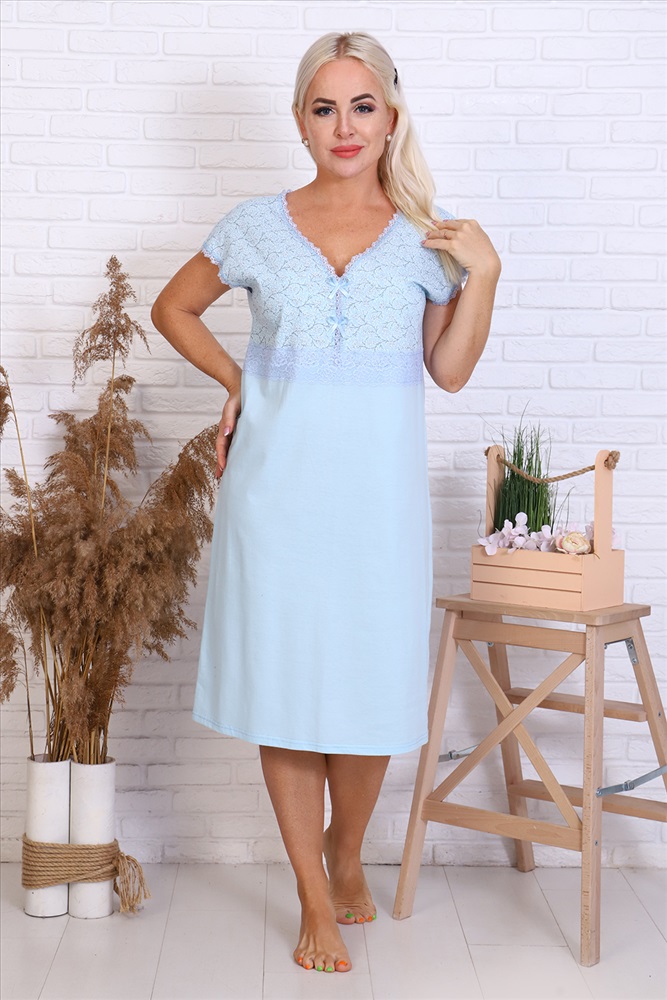 Состав: 100% хлопок Модель: Сорочка 42011 Тип товара: сорочка Материал: кулирка | кулирка Бренд: Натали Суслова Длина: средняя длина Назначение: для дома НДС: 5% Рисунок: однотонные Рукав: короткий рукав Сезонность: лето | осень | весна | зима Силуэт: прямой Стиль: домашний Сорочка женская из кулирного полотна, свободного кроя, горловина и линия проймы рукава обработаны кружевом, низ изделия обработан на плоскошовной машине. Таблица размеров и веса