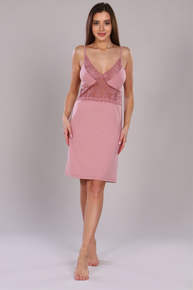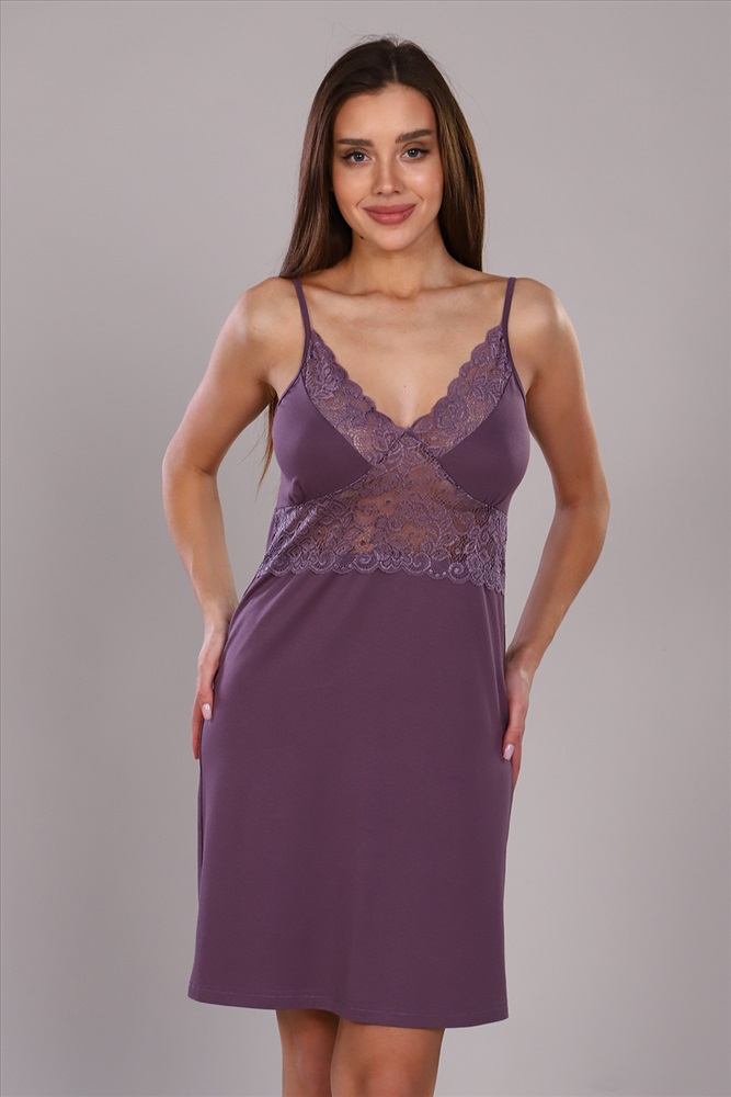 Стиль: домашний Сорочка на бретелях из мягкой вискозы, с эластичным кружевом. Натуральные материалы в составе позволят вашей коже дышать, что гарантирует вам комфортный сон.