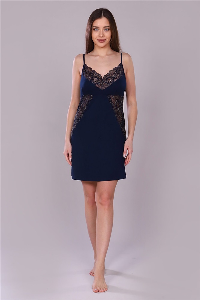 Сорочка на бретелях из мягкой вискозы, с эластичным кружевом. Натуральные материалы в составе позволят вашей коже дышать, что гарантирует вам комфортный сон.