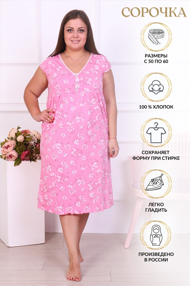 Состав: 100% хлопок Модель: Сорочка 42239 Тип товара: сорочка Материал: кулирка | кулирка Бренд: Натали Суслова Длина: средняя длина Назначение: для дома НДС: 5% Отделка: со складками Рисунок: цветы Рукав: короткий рукав Сезонность: лето | осень | весна | зима Силуэт: свободный Стиль: домашний Сорочка женская из набивного кулирного полотна. Благодаря натуральному составу ткань позволяет вашей коже дышать. Изделие легкое в уходе. Таблица размеров и веса